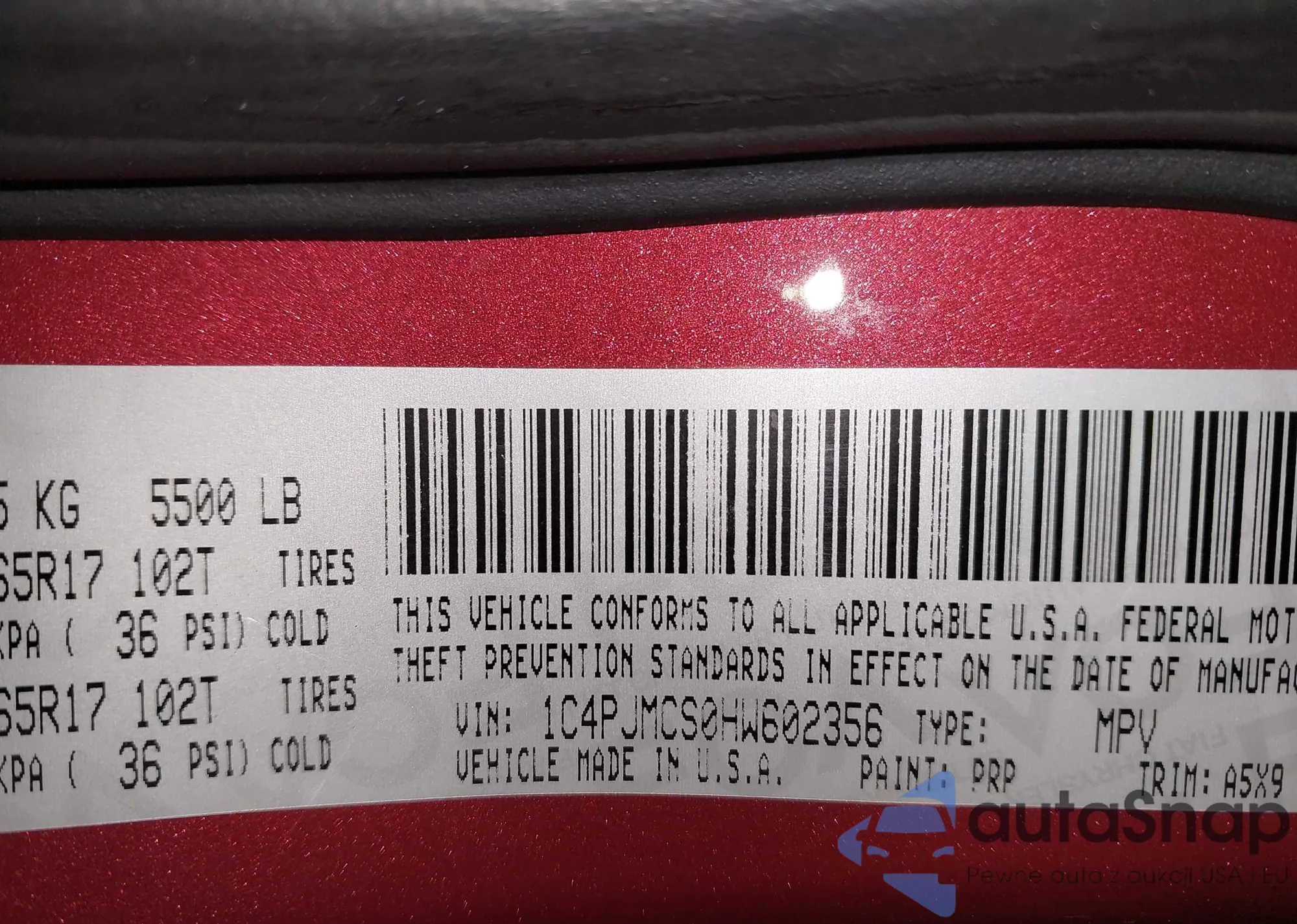 • VIN 1C4PJMCS0HW602356