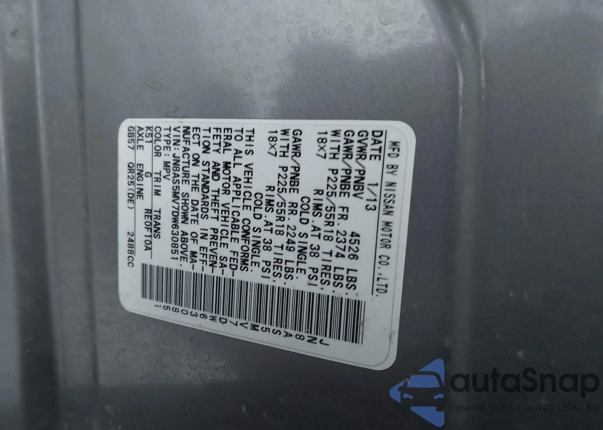 LOT: 43952244 VIN: 5N1AN0NW0AC523016
