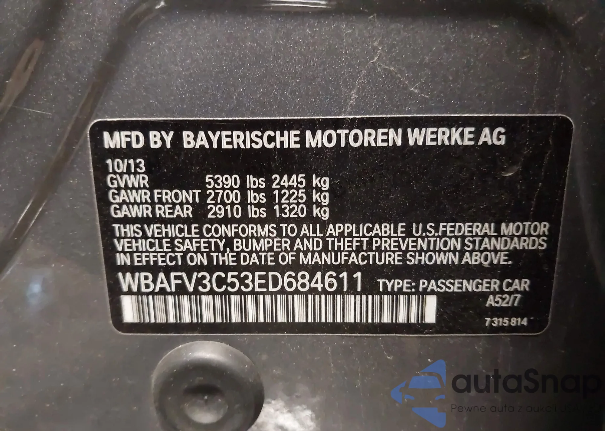 • VIN WBAFV3C53ED684611