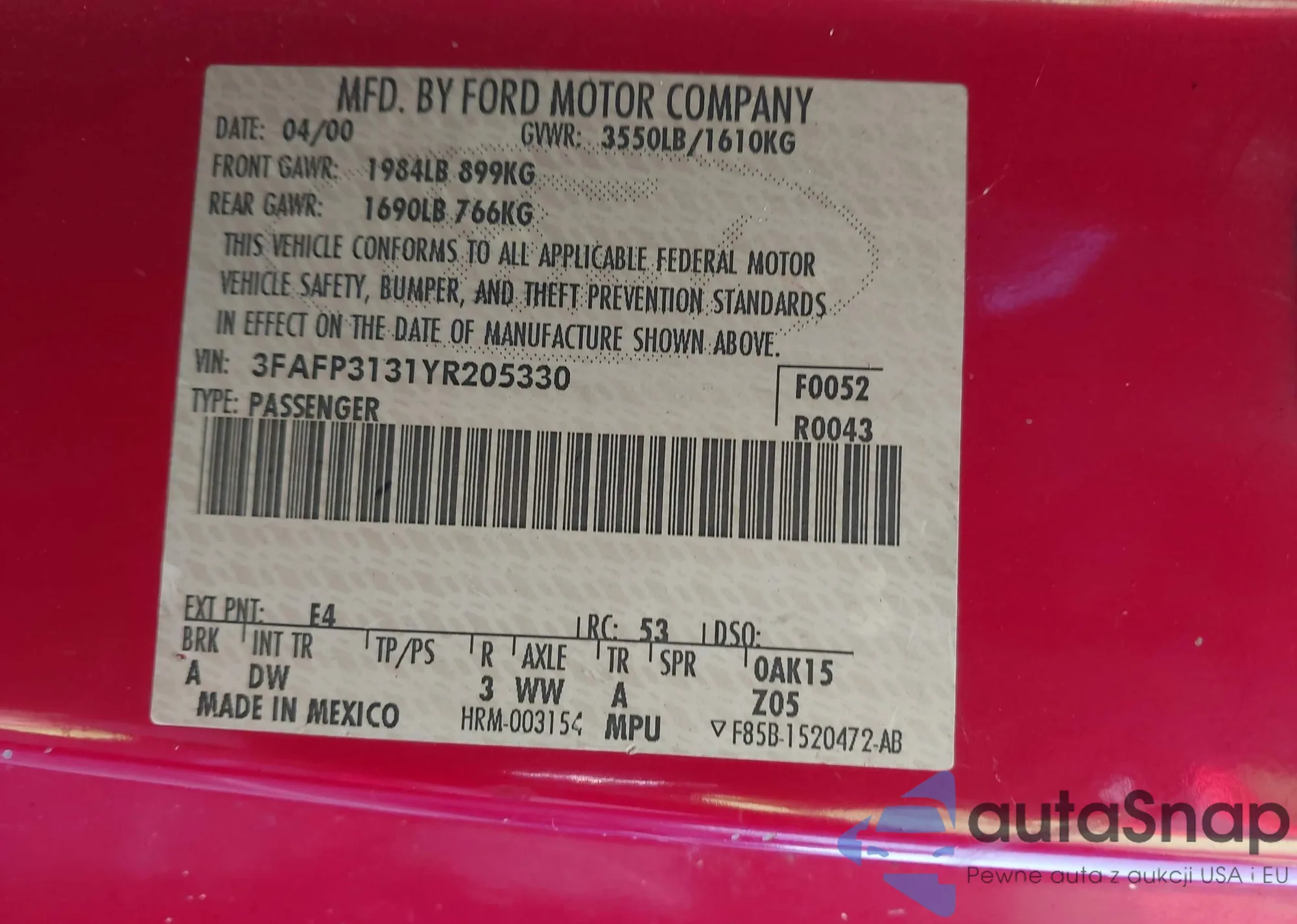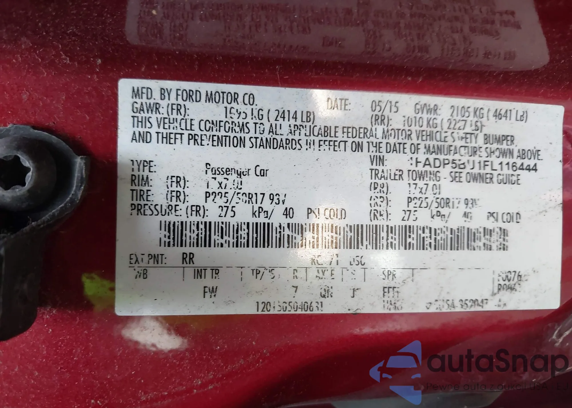 • VIN 1FADP5BU1FL116444