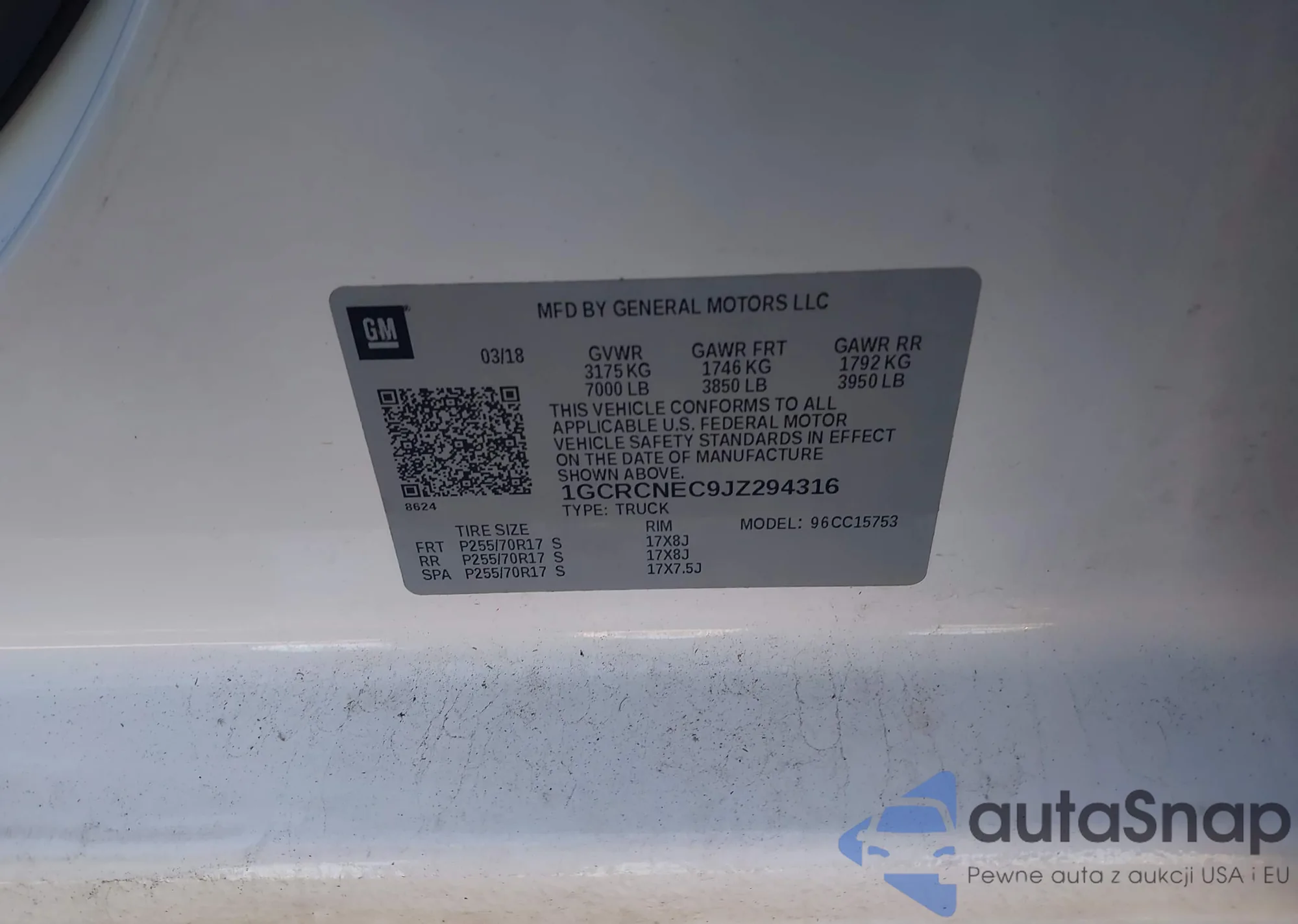 LOT: 43931802 VIN: 1GCRCNEC9JZ294316