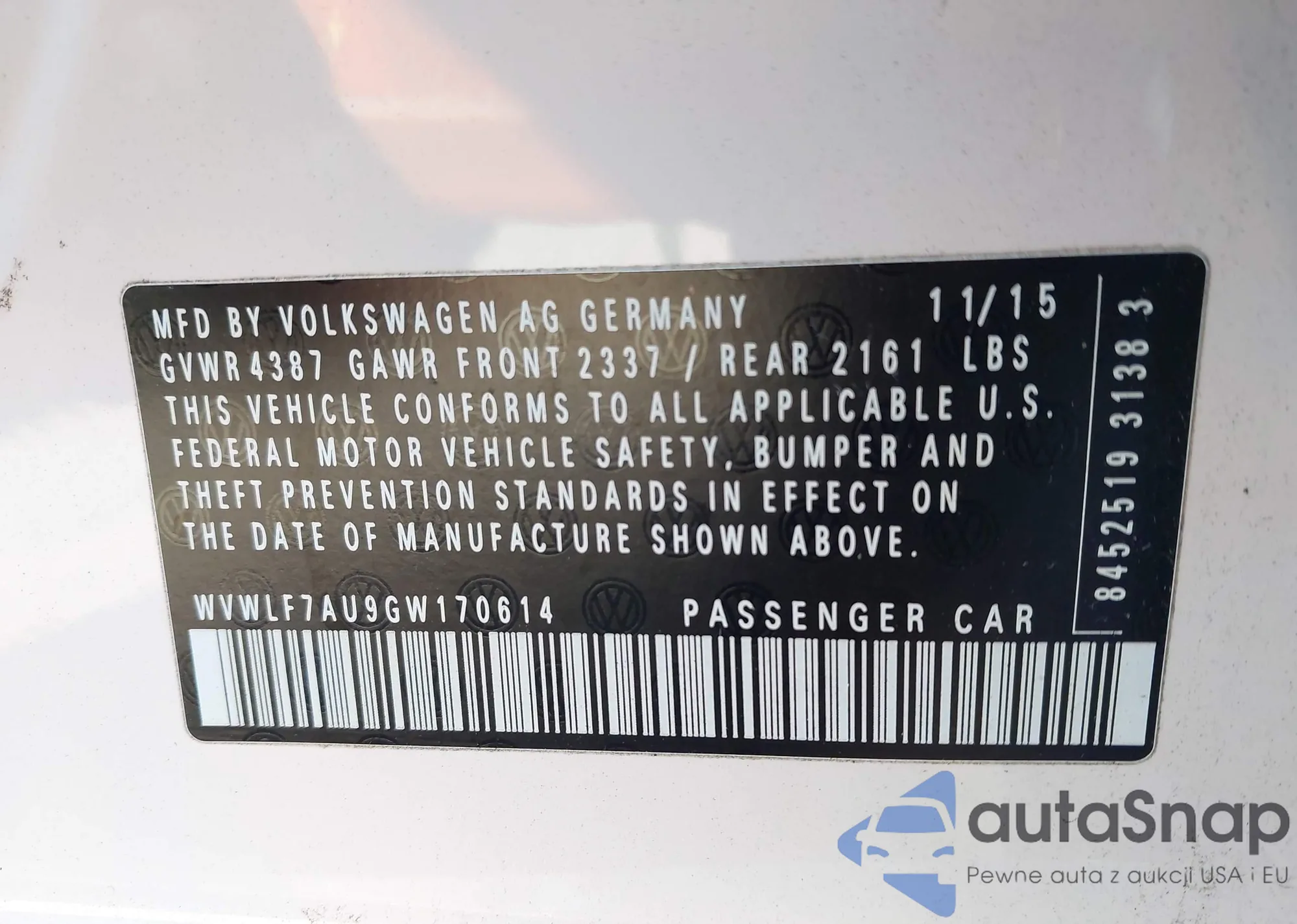 • VIN WBA13AR03MCF54075