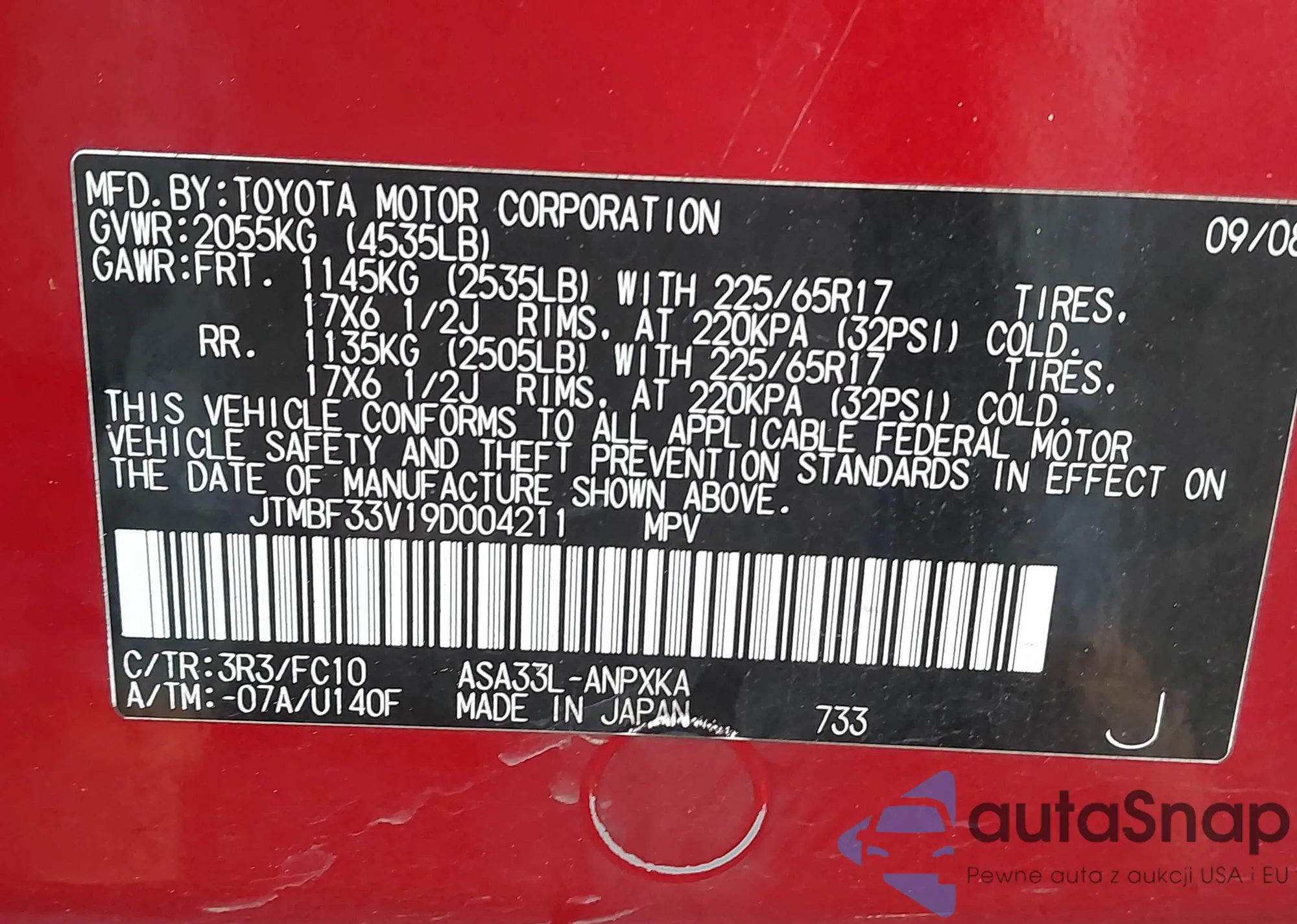 • VIN JTMBF33V19D004211