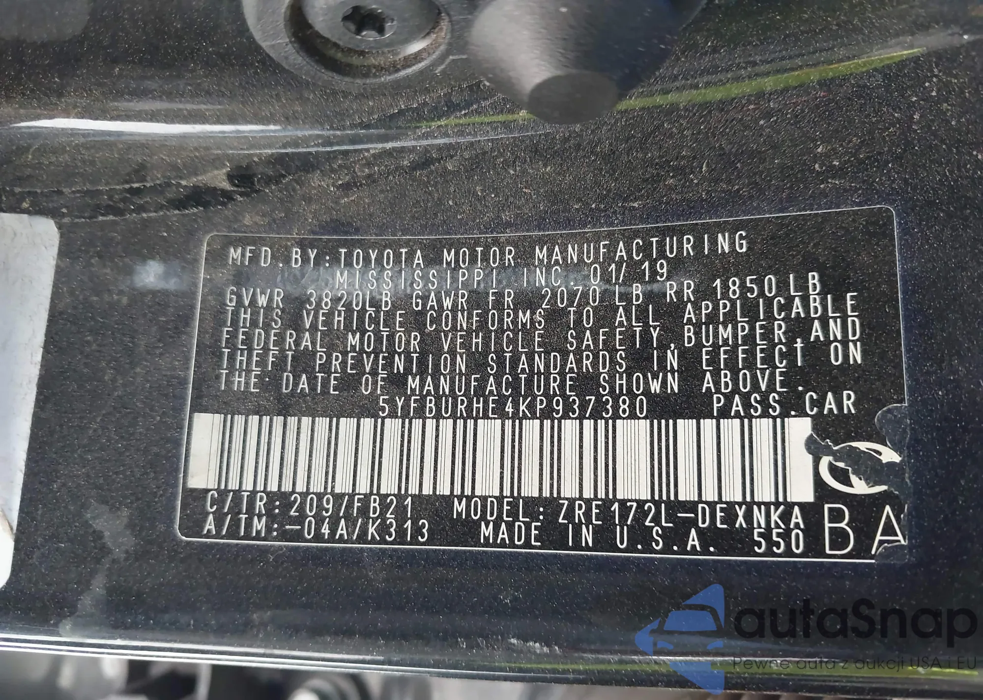• VIN 5YFBURHE4KP937380