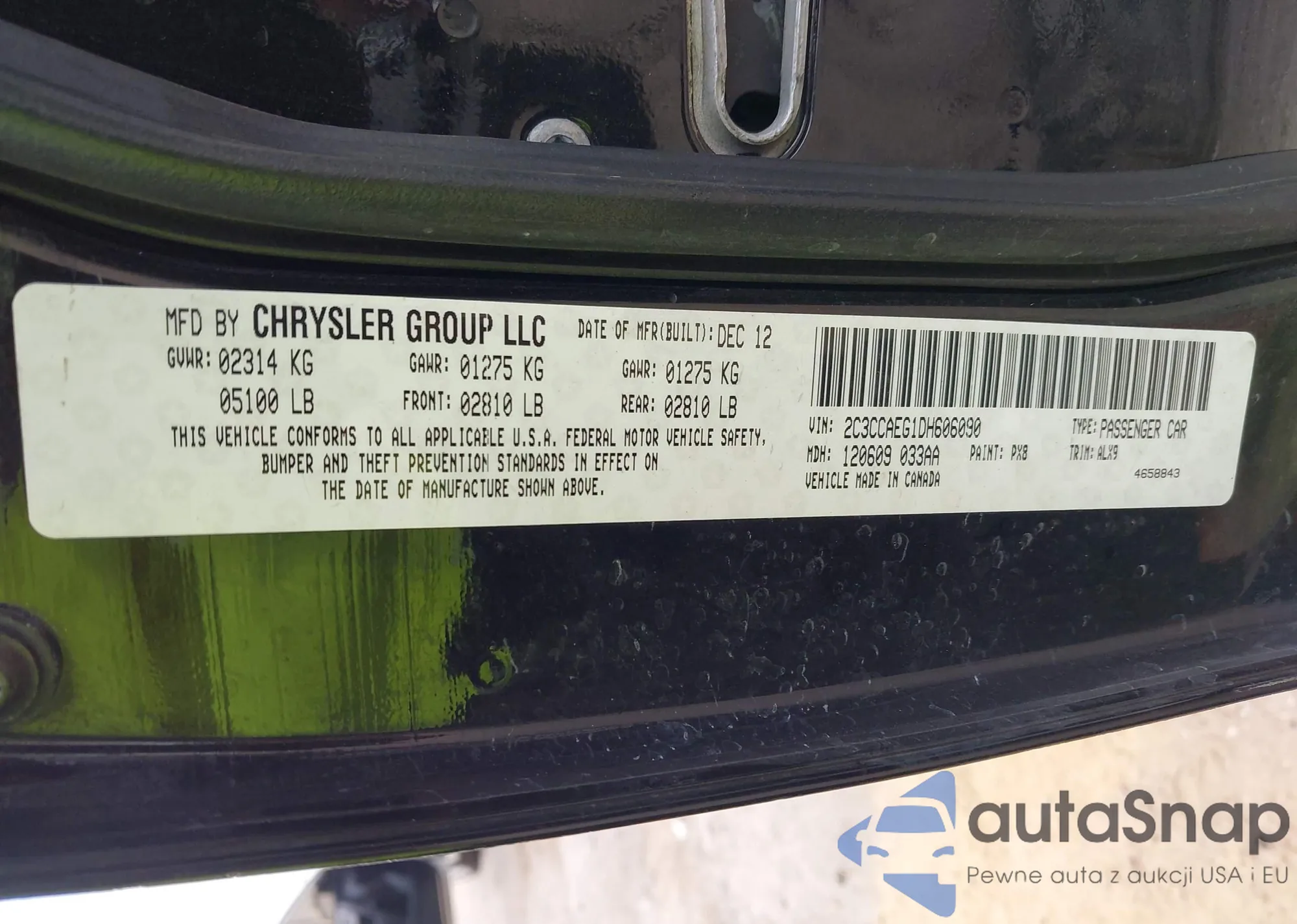 LOT: 43734411 VIN: 2C3CCAEG1DH606090