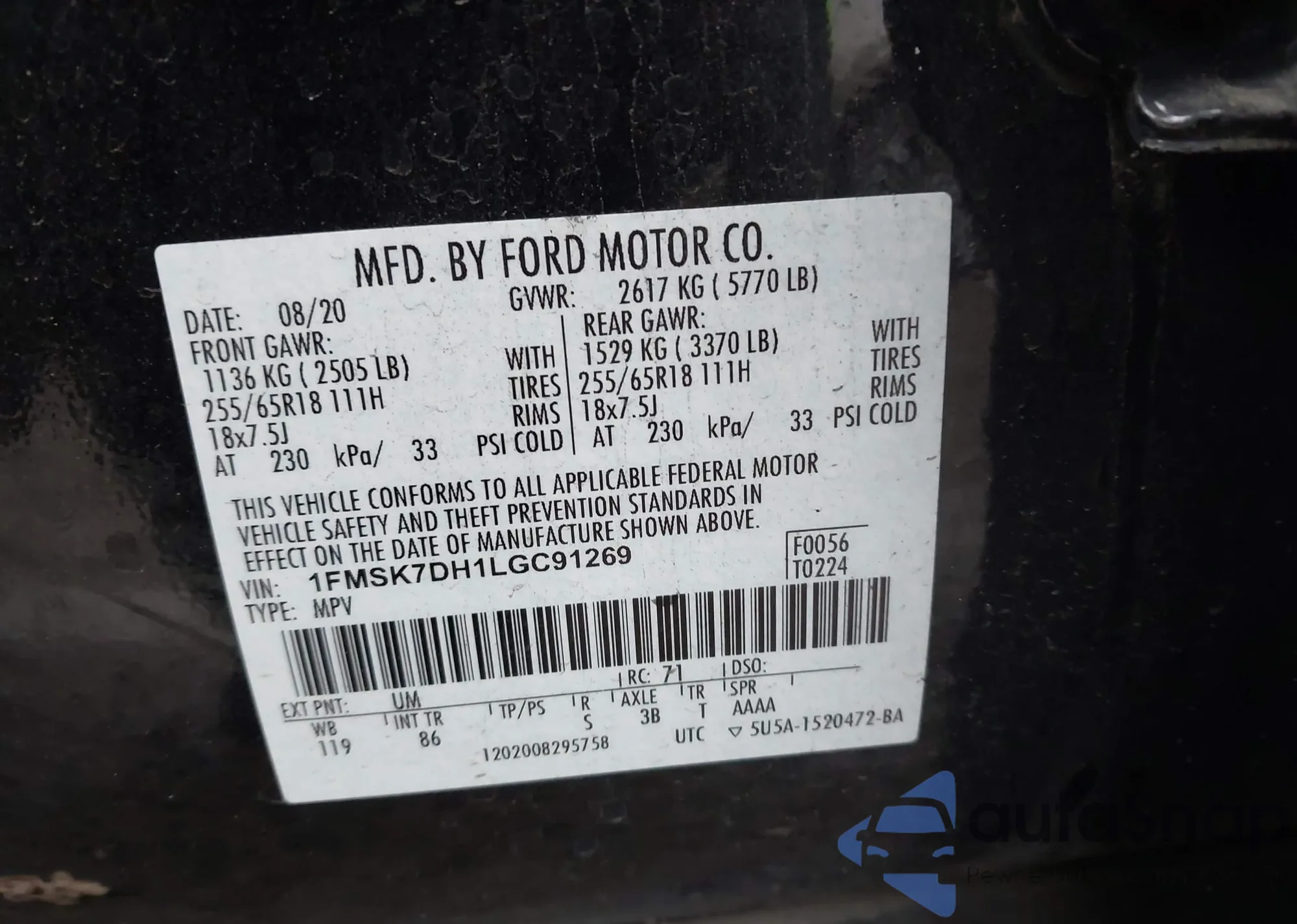 LOT: 43923509 VIN: 1FM5K8GT0JGB54968