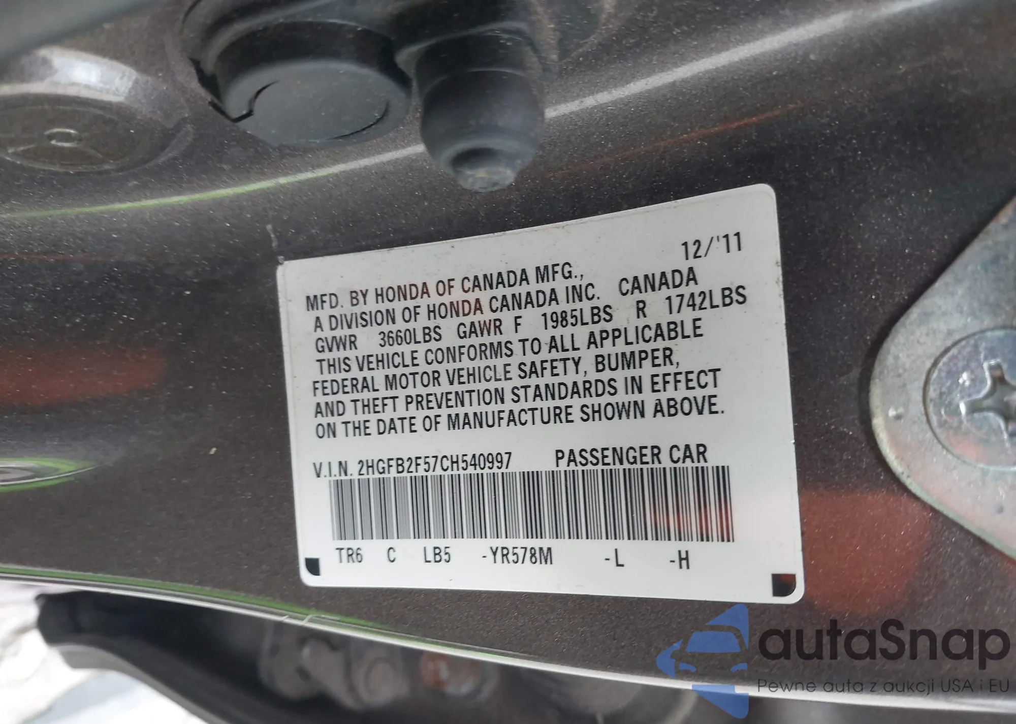 • VIN 2HGFB2F57CH540997