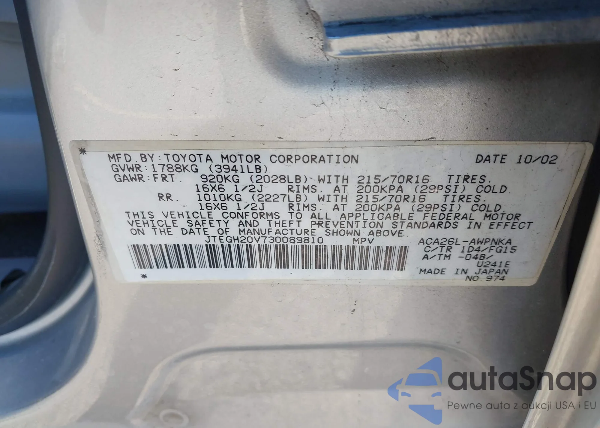• Lot number 43970074