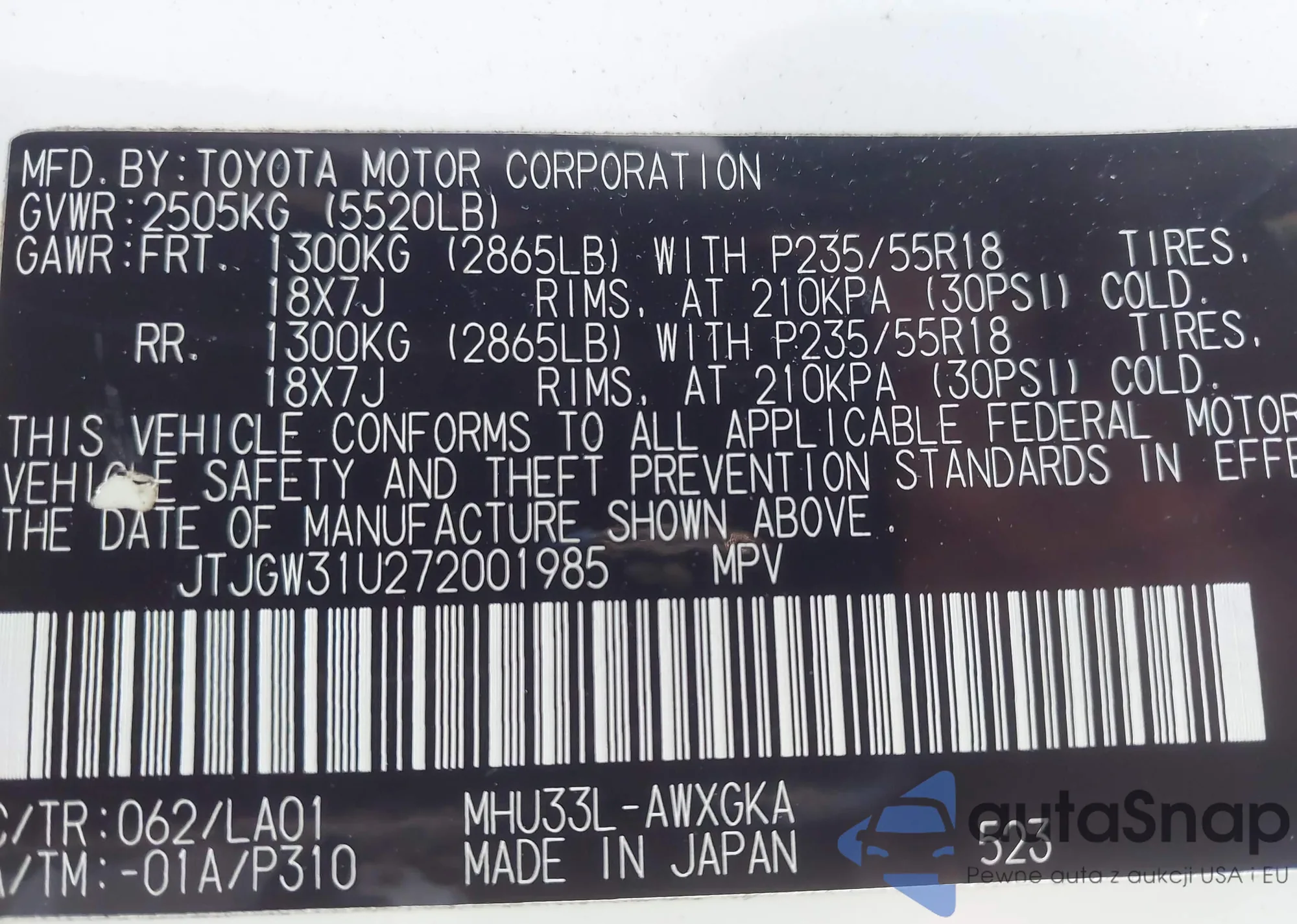 LOT: 43711469 VIN: WP0AB2A87FK182842