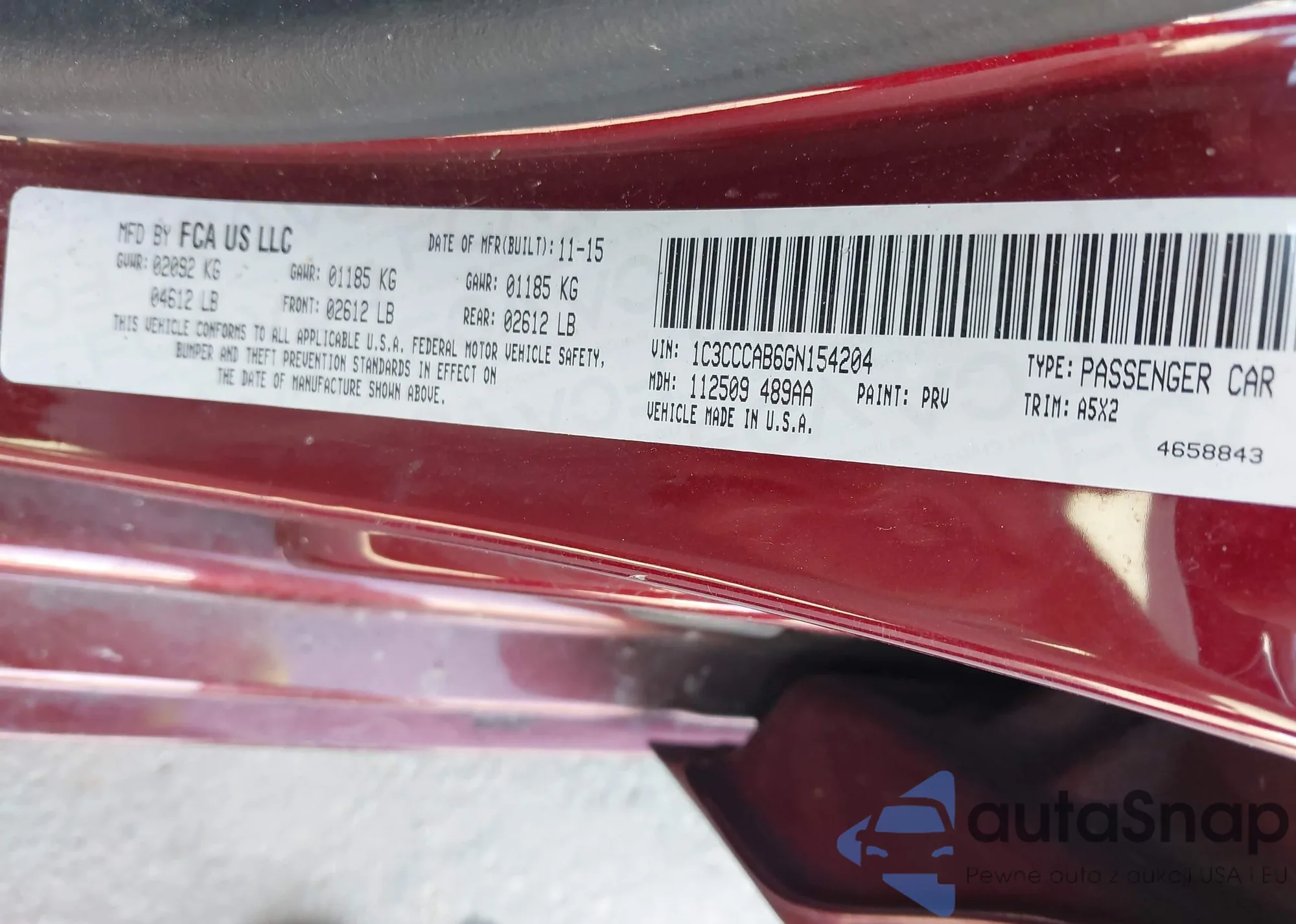 LOT: 43819049 VIN: 1C3CCCAB6GN154204