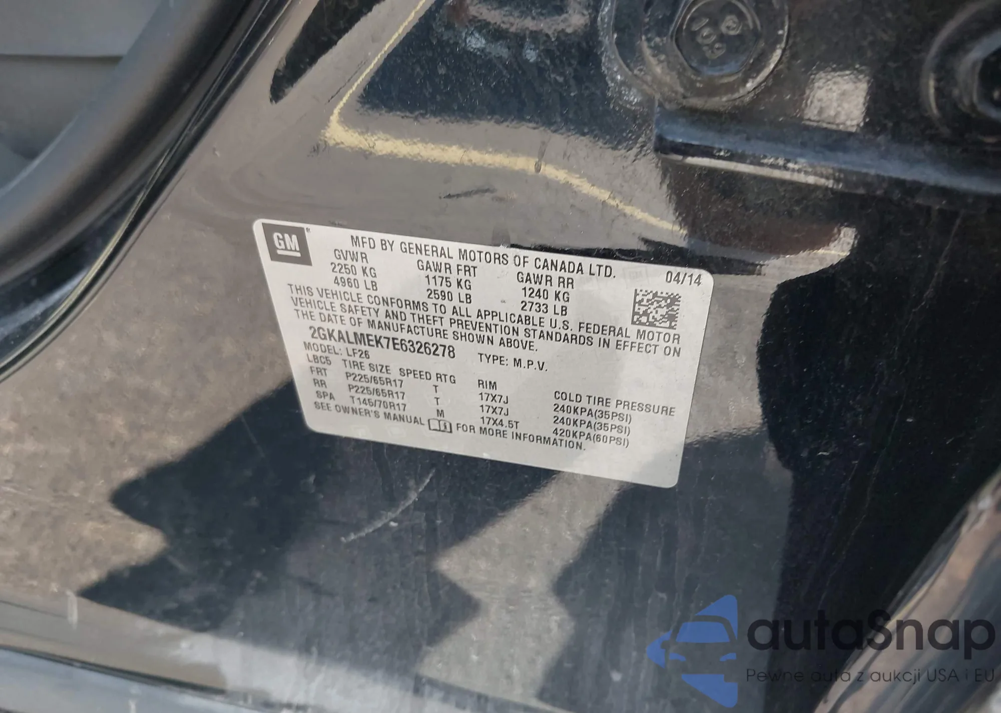 • VIN 2GKALMEK7E6326278