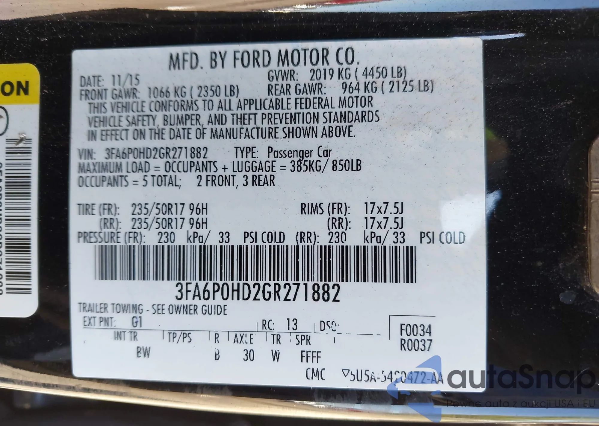 LOT: 43015838 VIN: 3FA6P0HD2GR271882