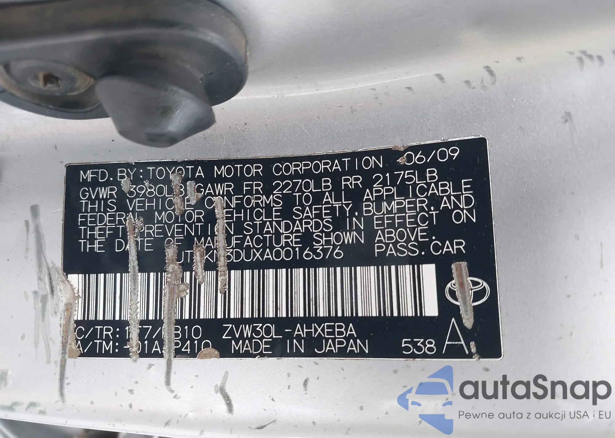 • VIN JTDKN3DUXA0016376