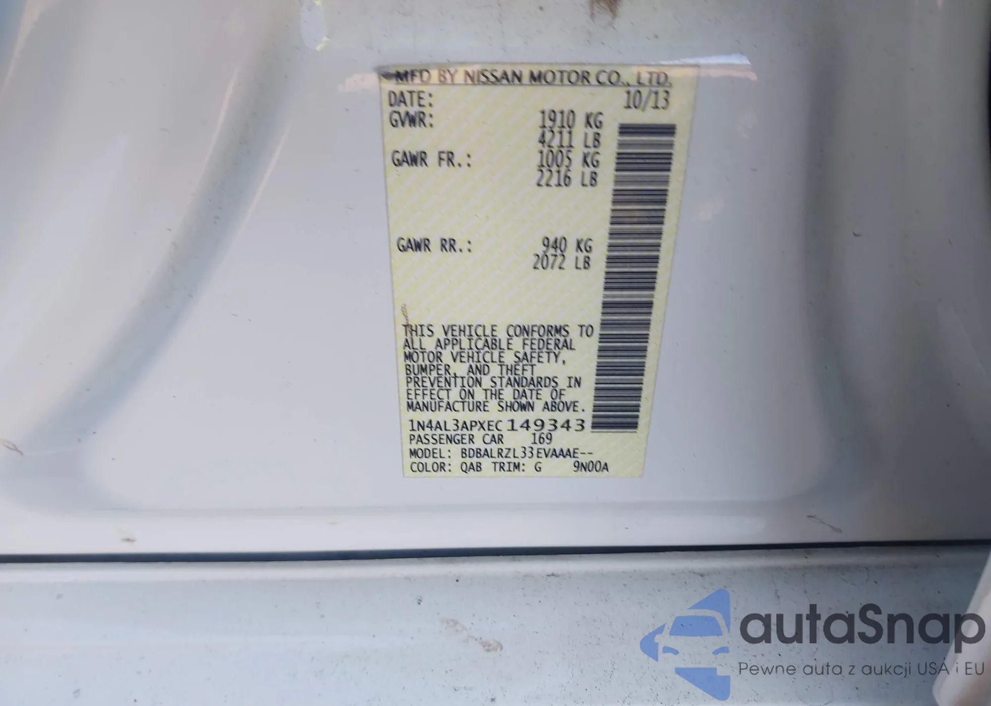 LOT: 43907314 VIN: 1N4AL3APXEC149343