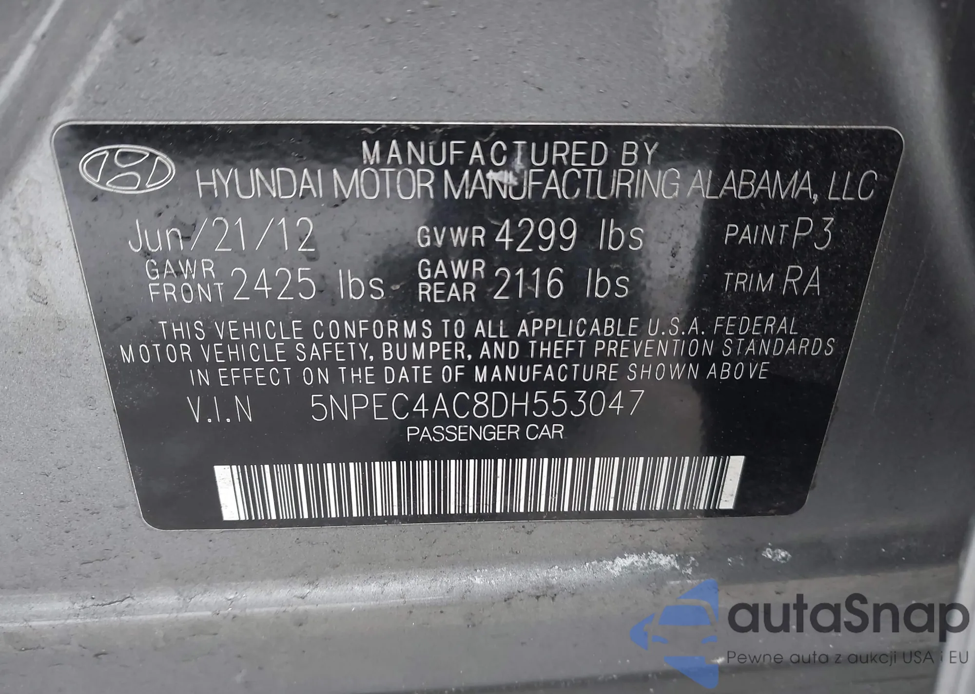 • VIN 5NPEC4AC8DH553047