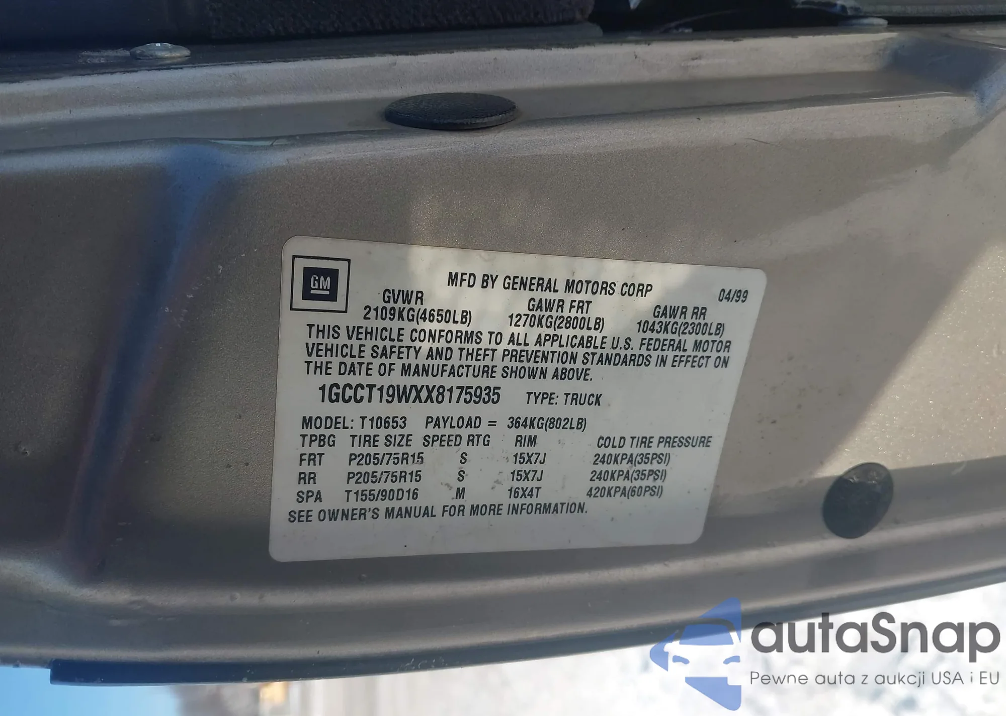 • VIN 1GCCS19W9YK109710