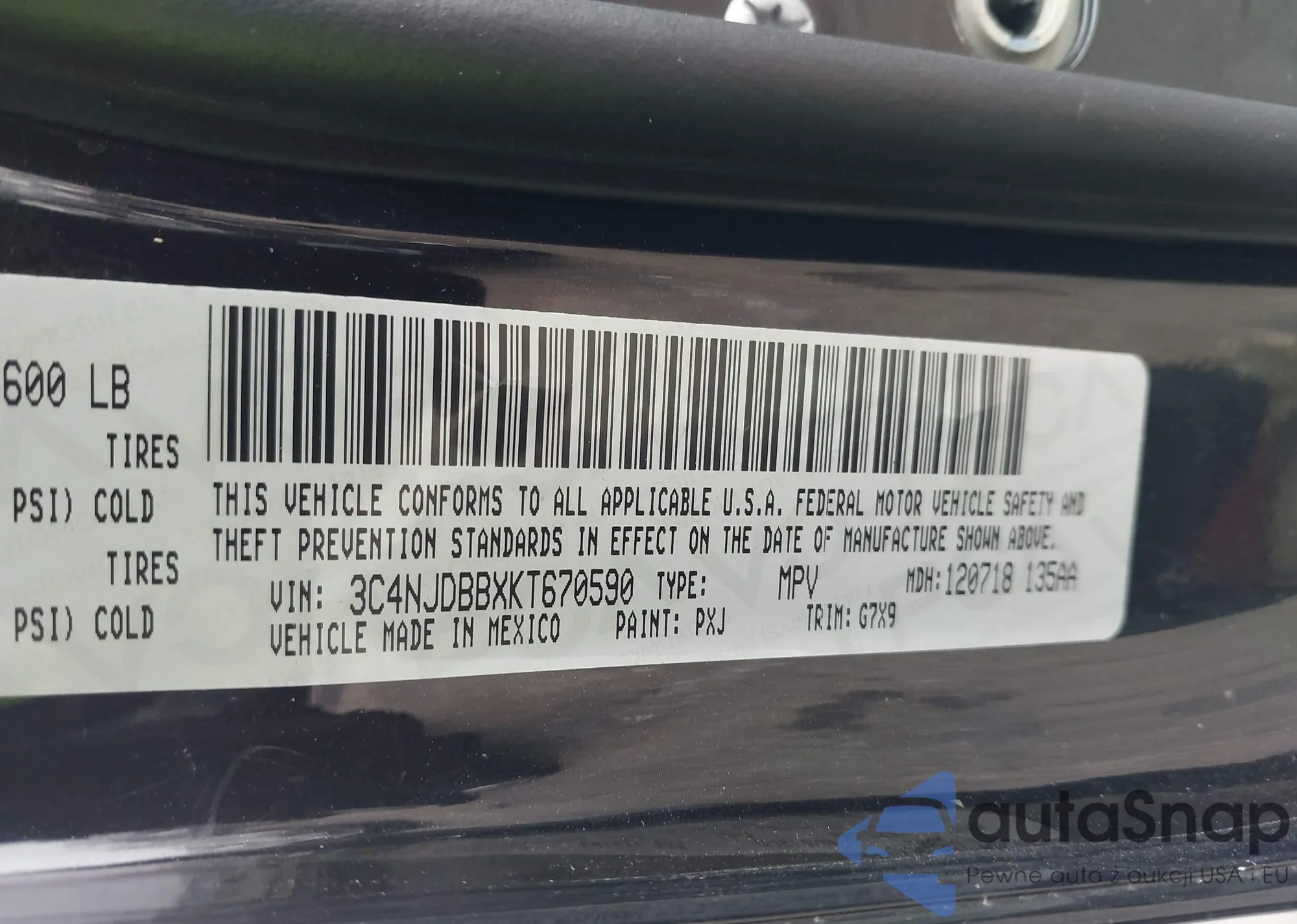 LOT: 43752135 VIN: 3C4NJDBBXKT670590