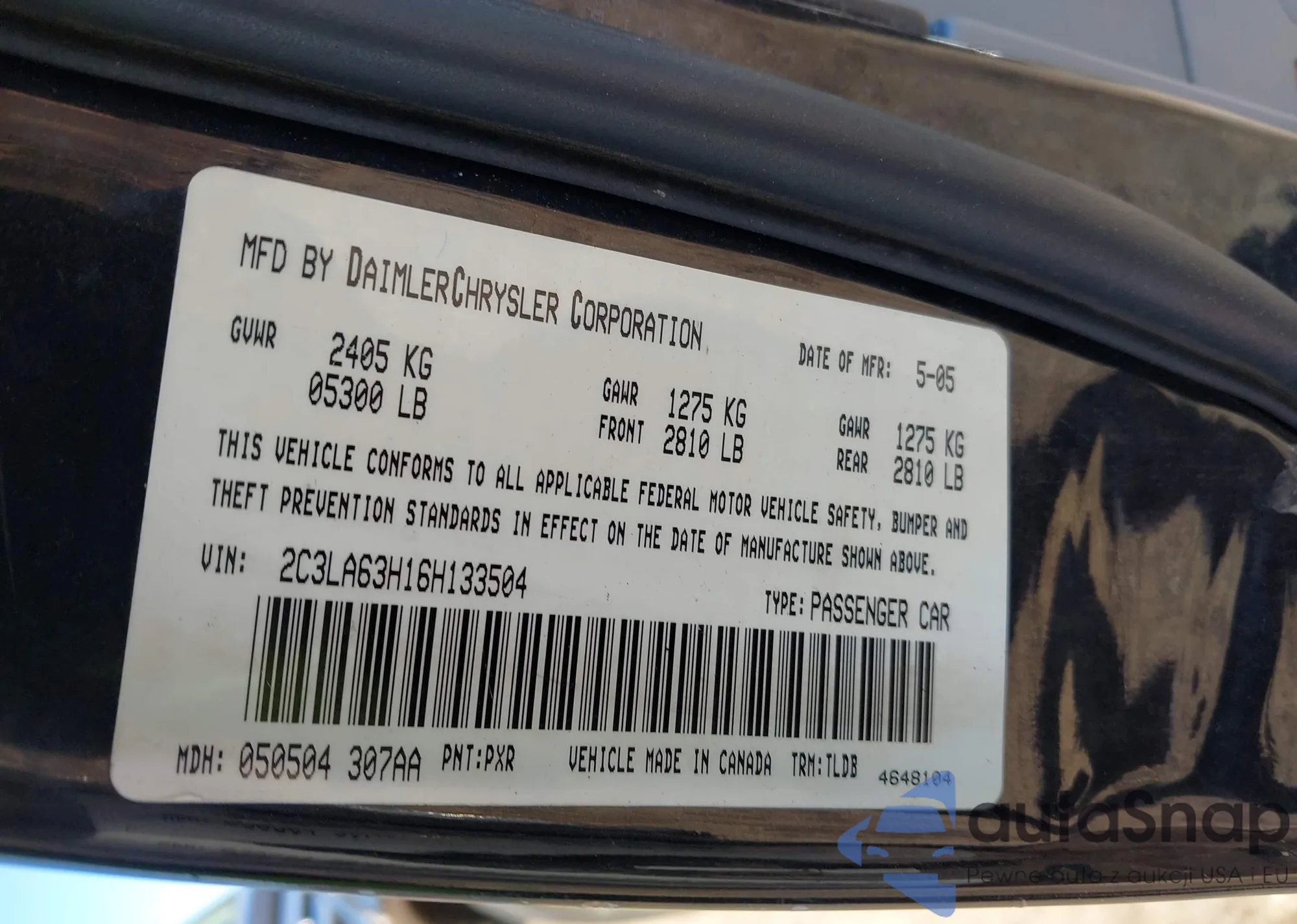 • VIN 2C3LA63H16H133504