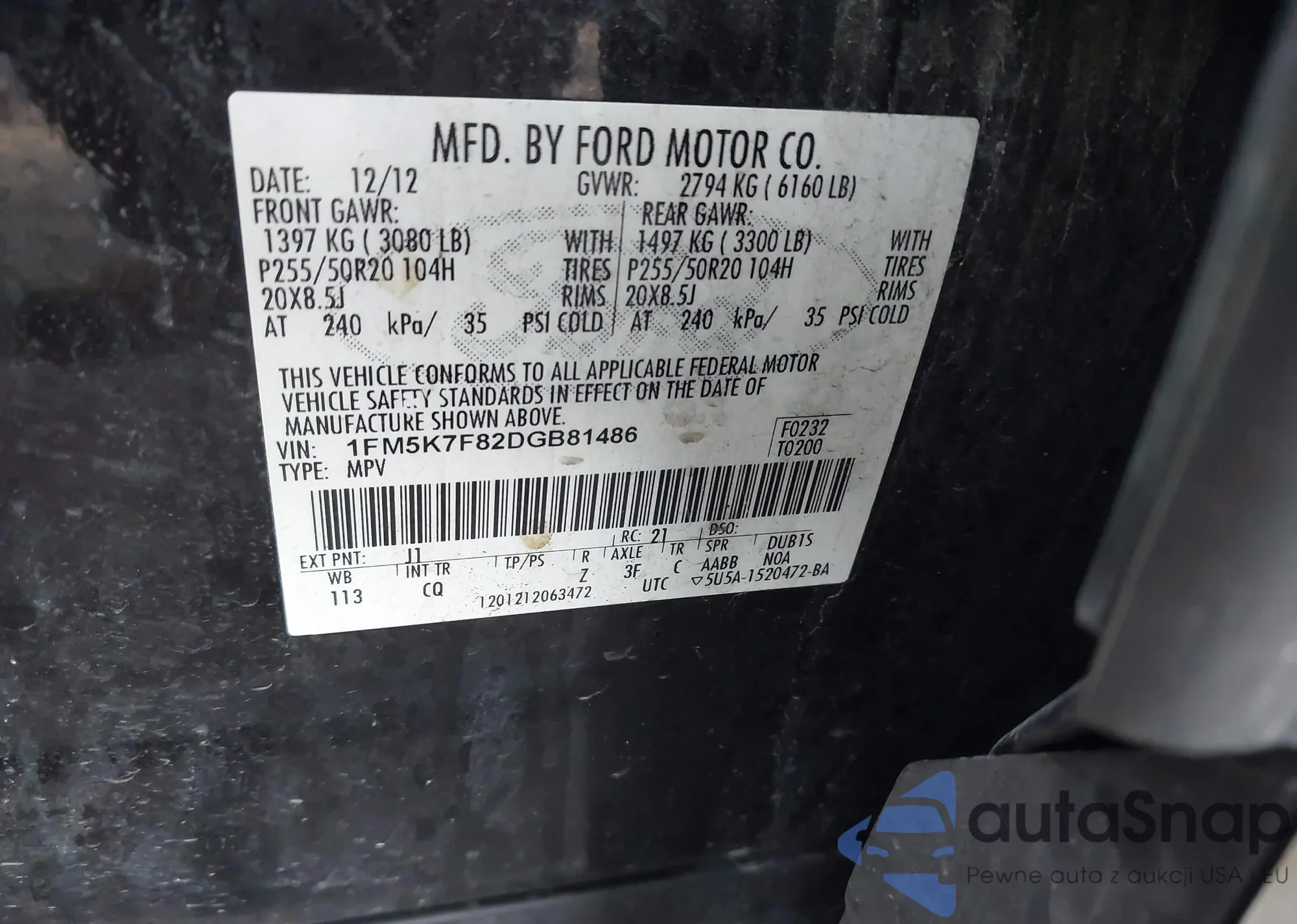 • VIN 2FMGK5D81DBD02192