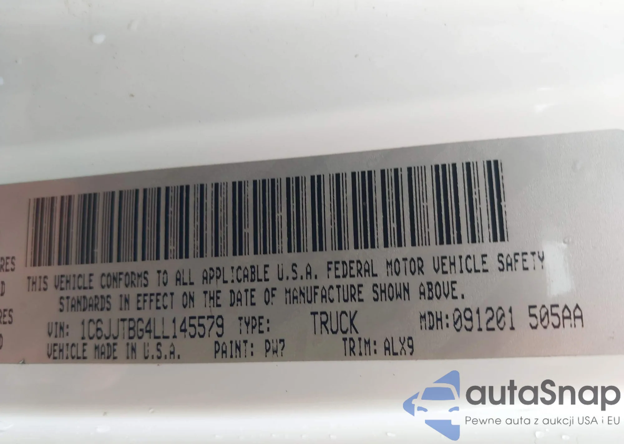 • VIN 1C6JJTBG4LL145579