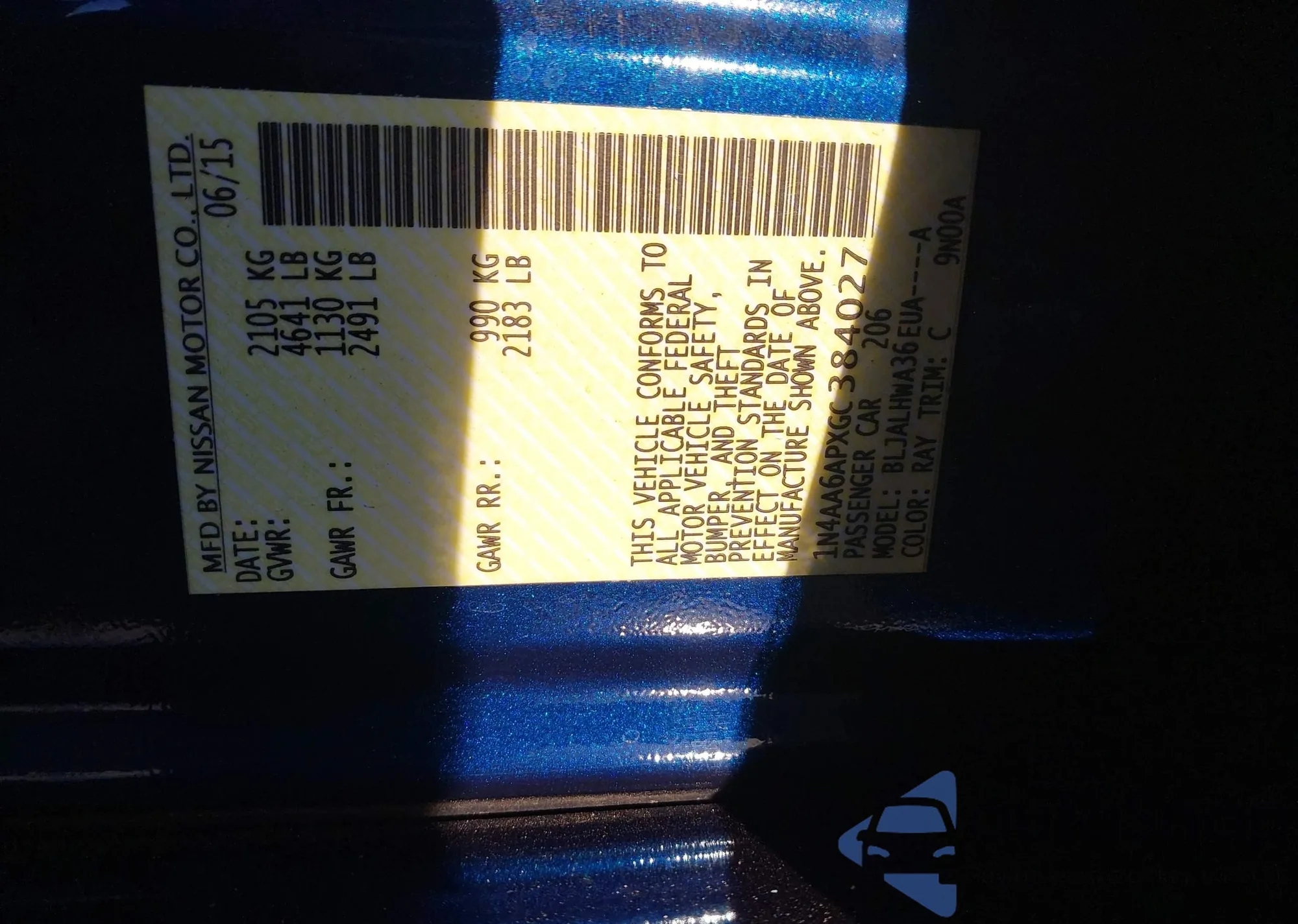• VIN 1N4AA6APXGC384027