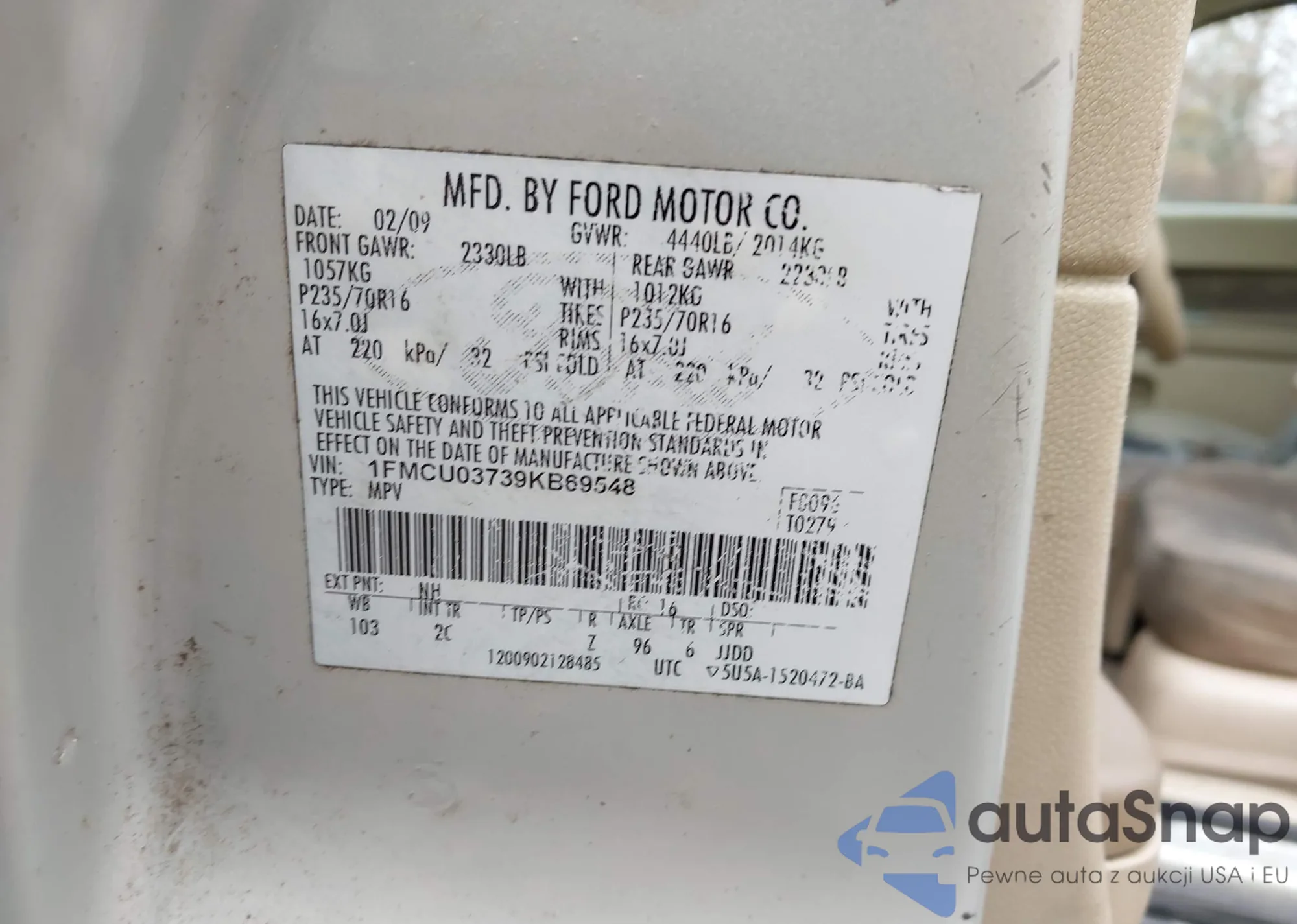 • VIN 1FMCU0GX8GUB70335