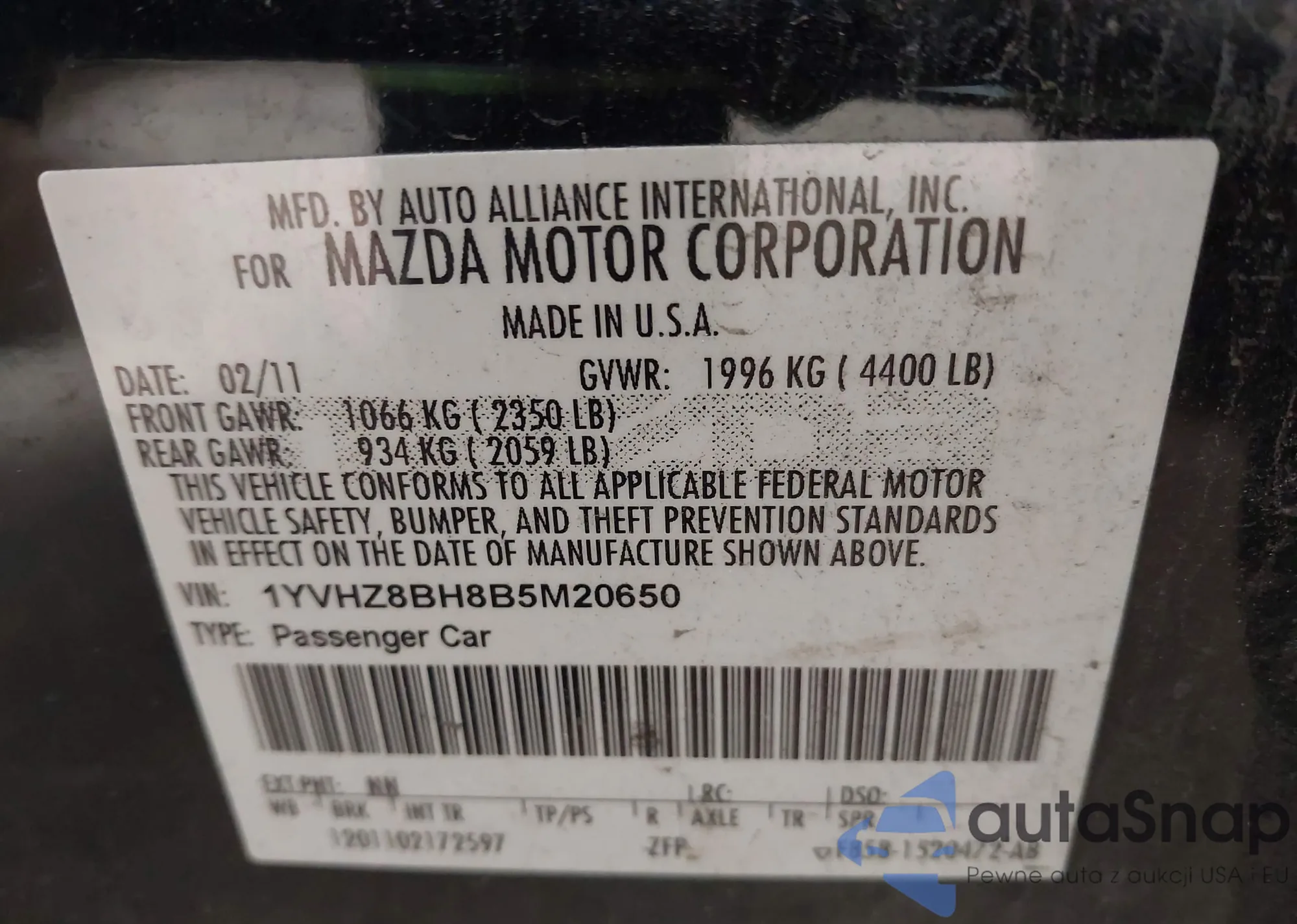 LOT: 43788385 VIN: WBAKC6C56BC395326