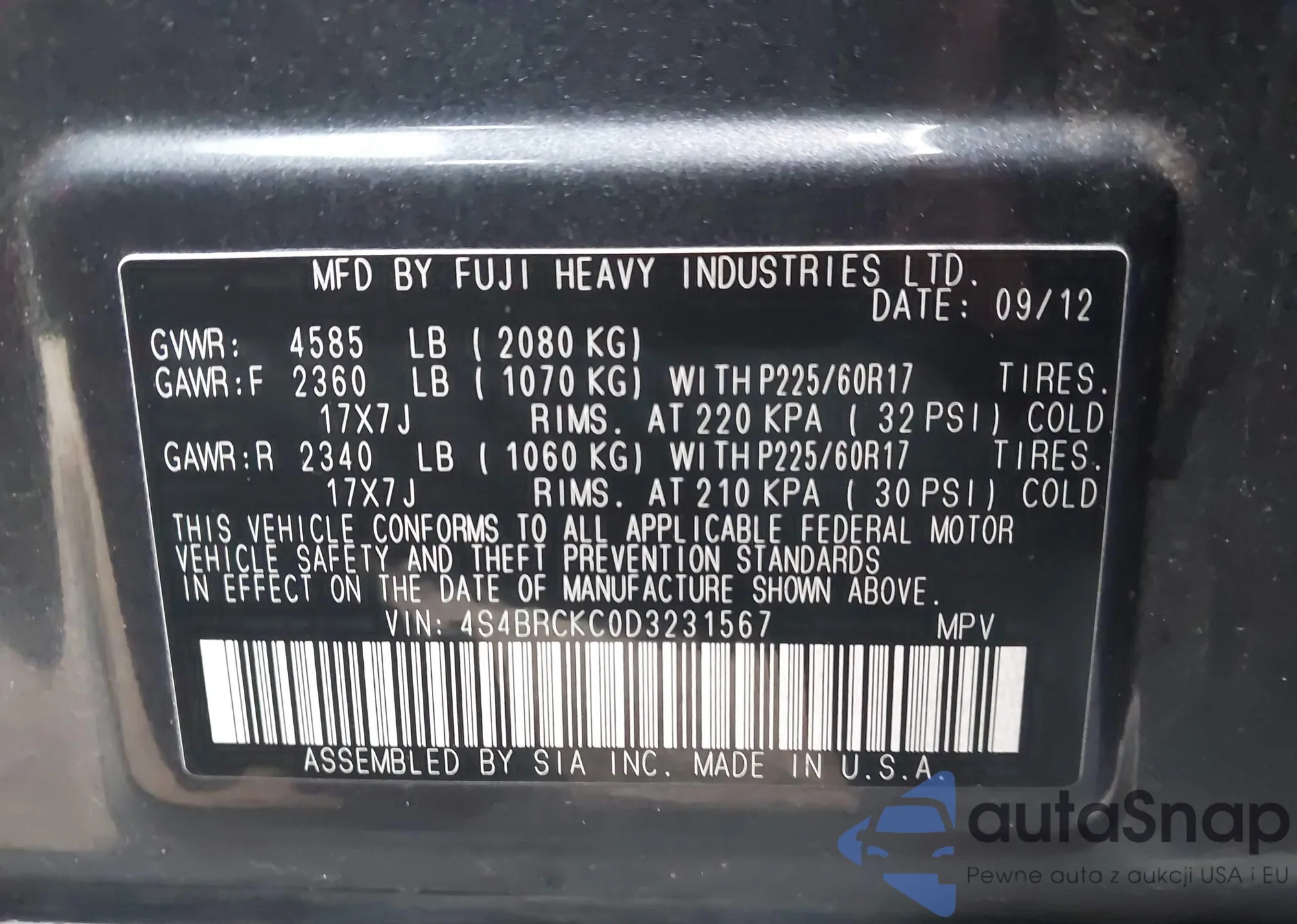 • VIN 4S4BRCKC0D3231567