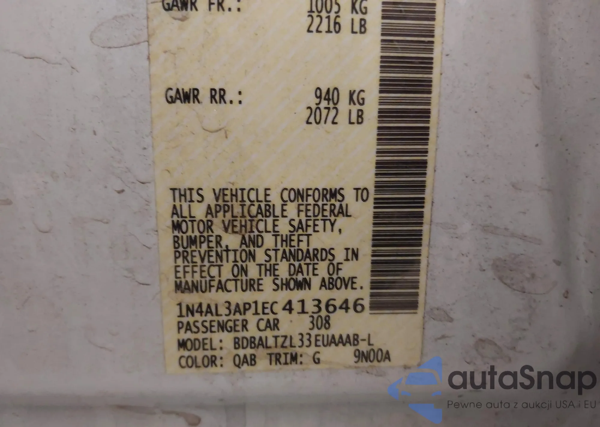 LOT: 43154454 VIN: 1N4AL3AP1EC413646