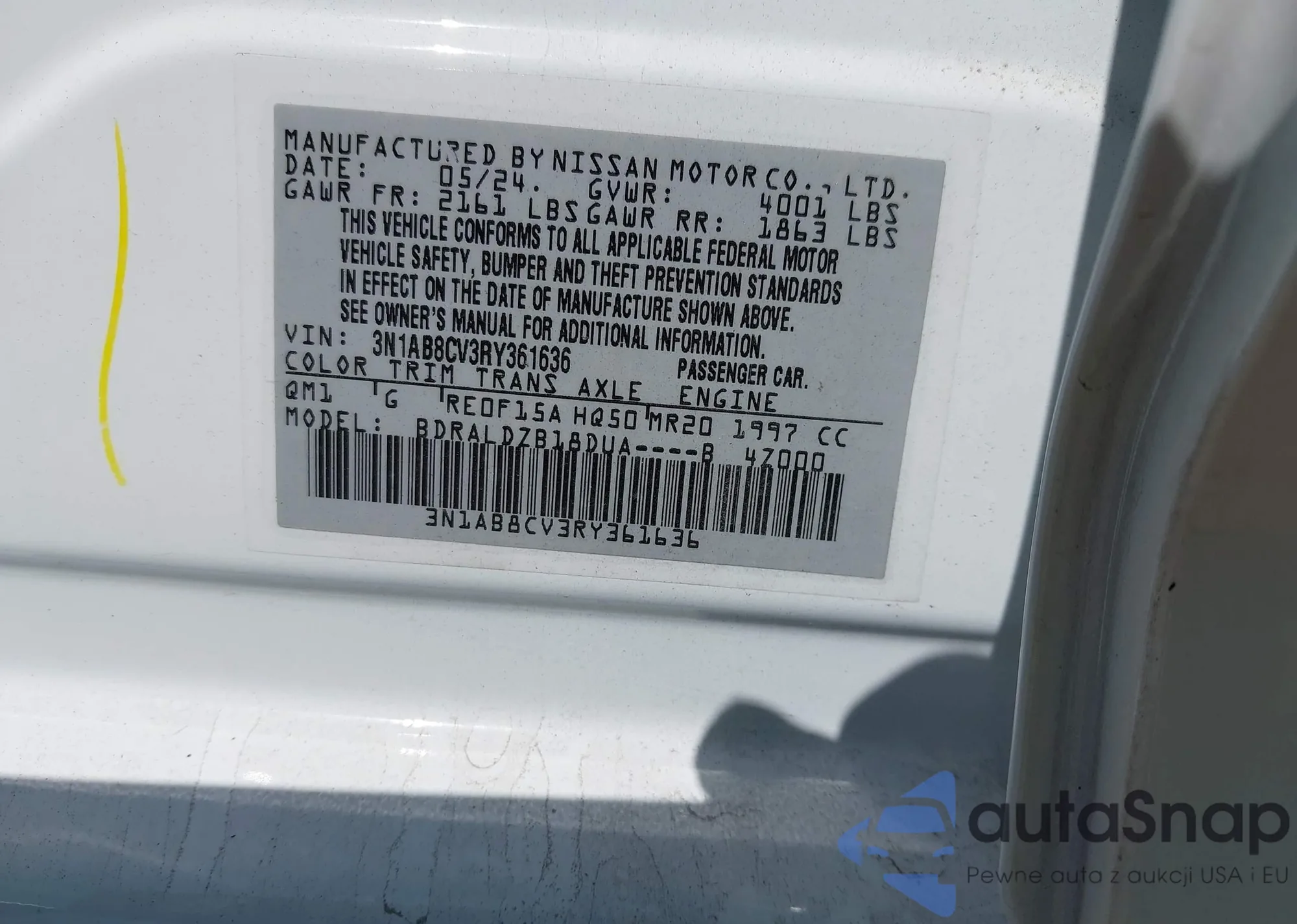 • VIN 3N1AB8CV3RY361636