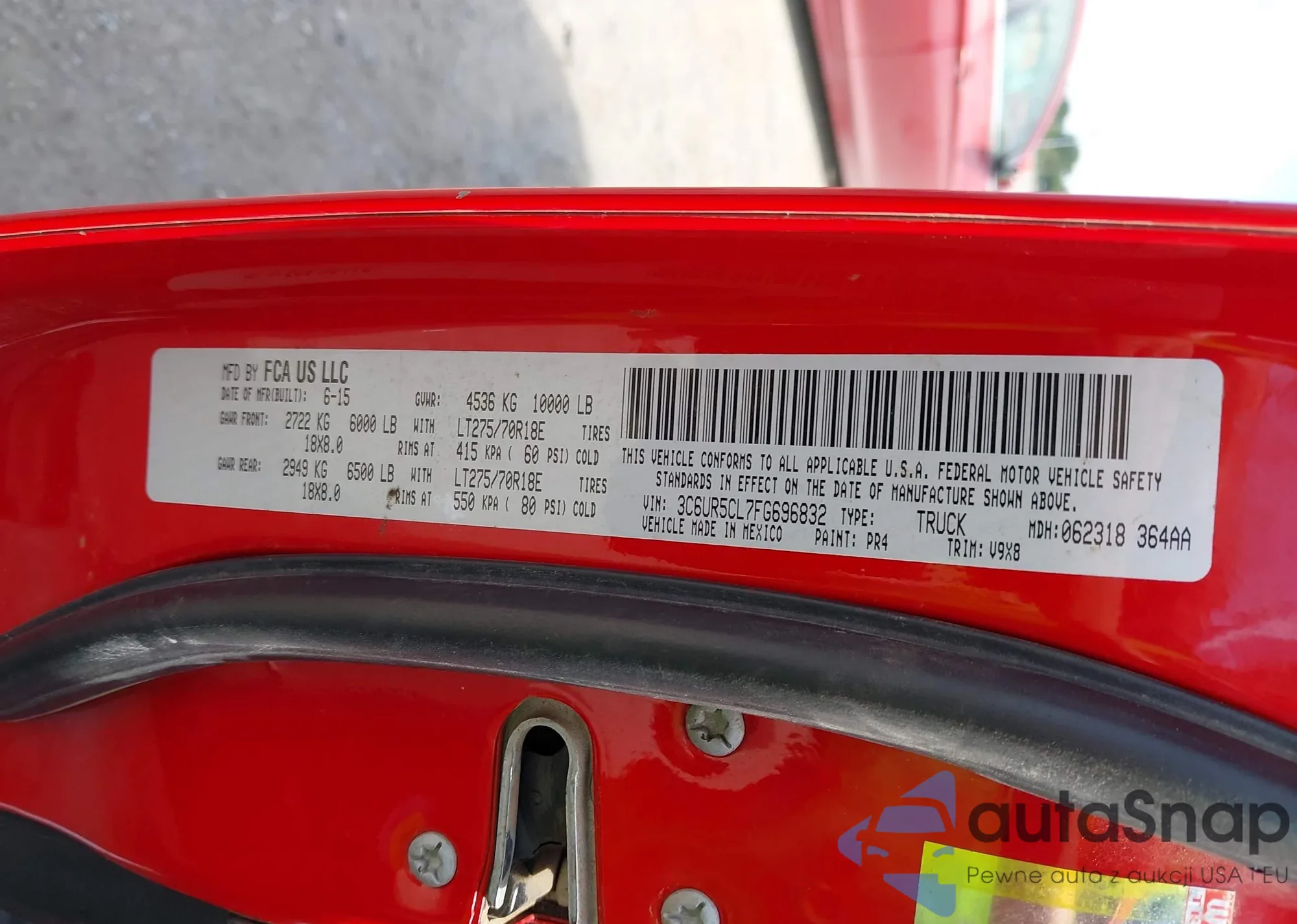 LOT: 43381945 VIN: 3C6UR5CL7FG696832