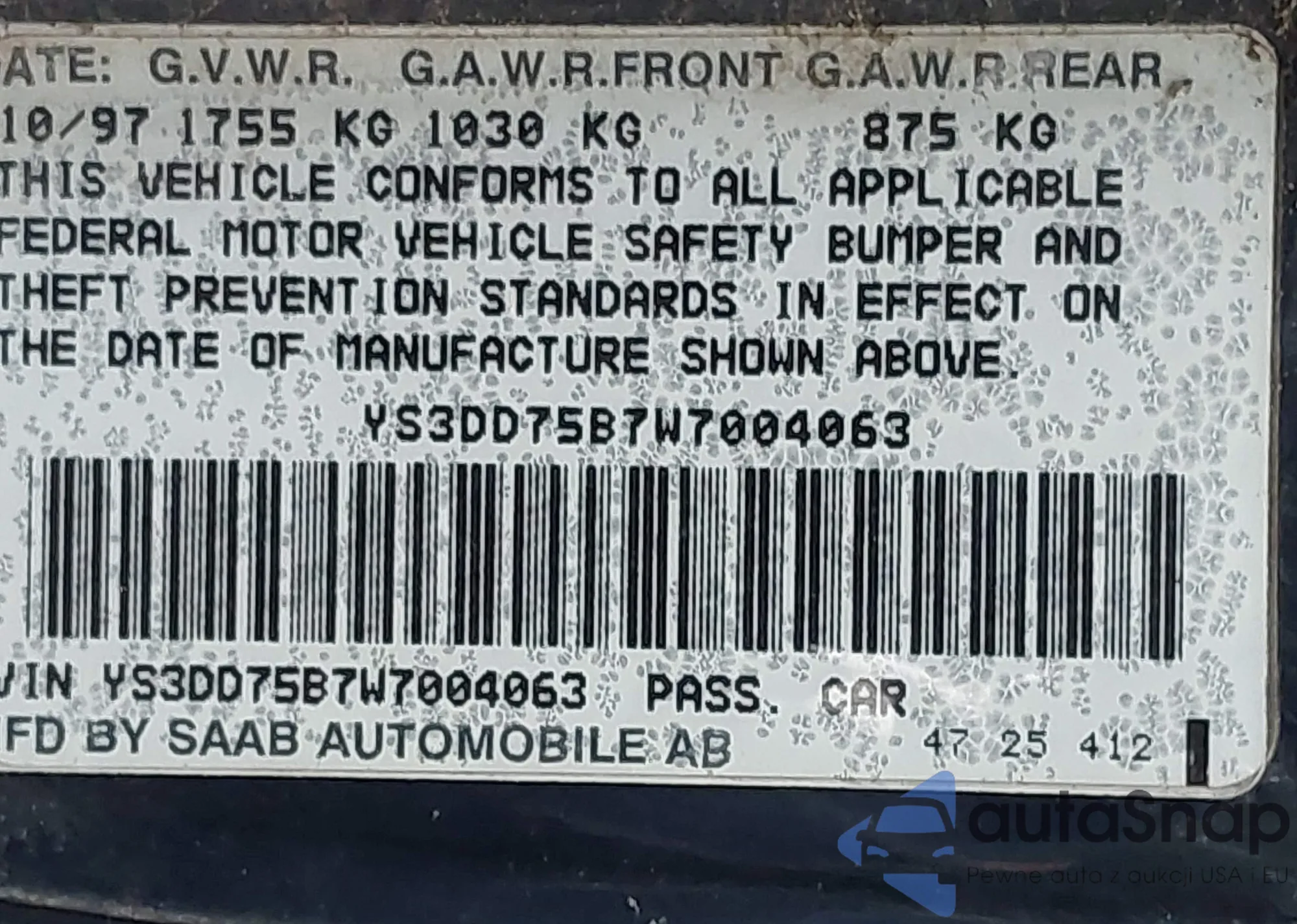 • VIN 3VWEB7BU9LM066943