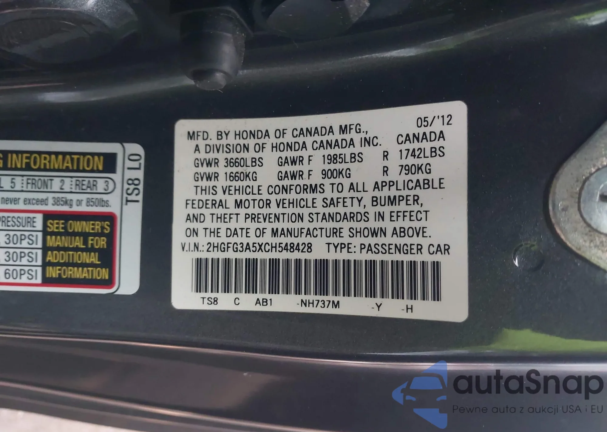 • VIN 2HGFG3A5XCH548428