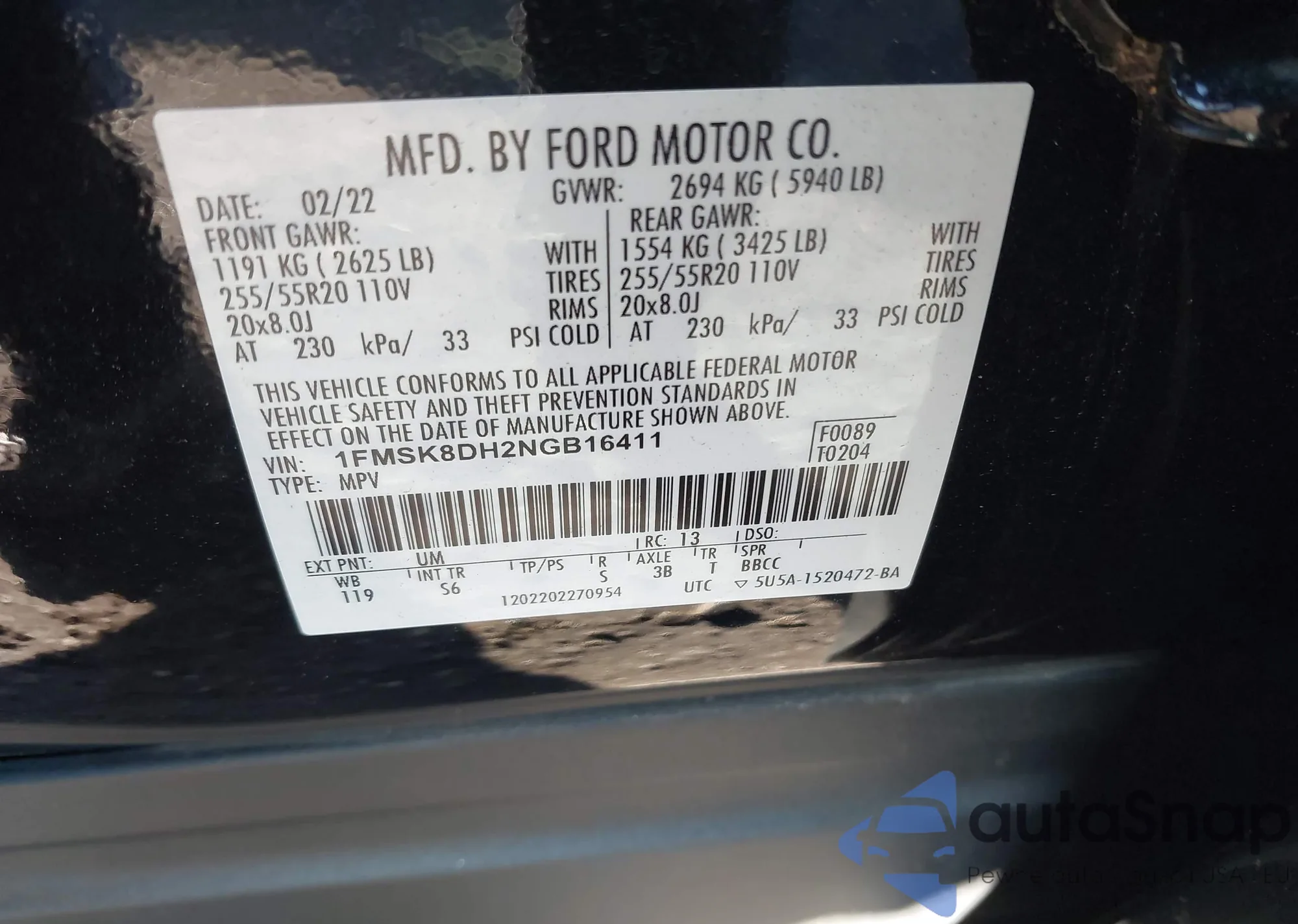 • VIN MAJ6S3GL7LC355570