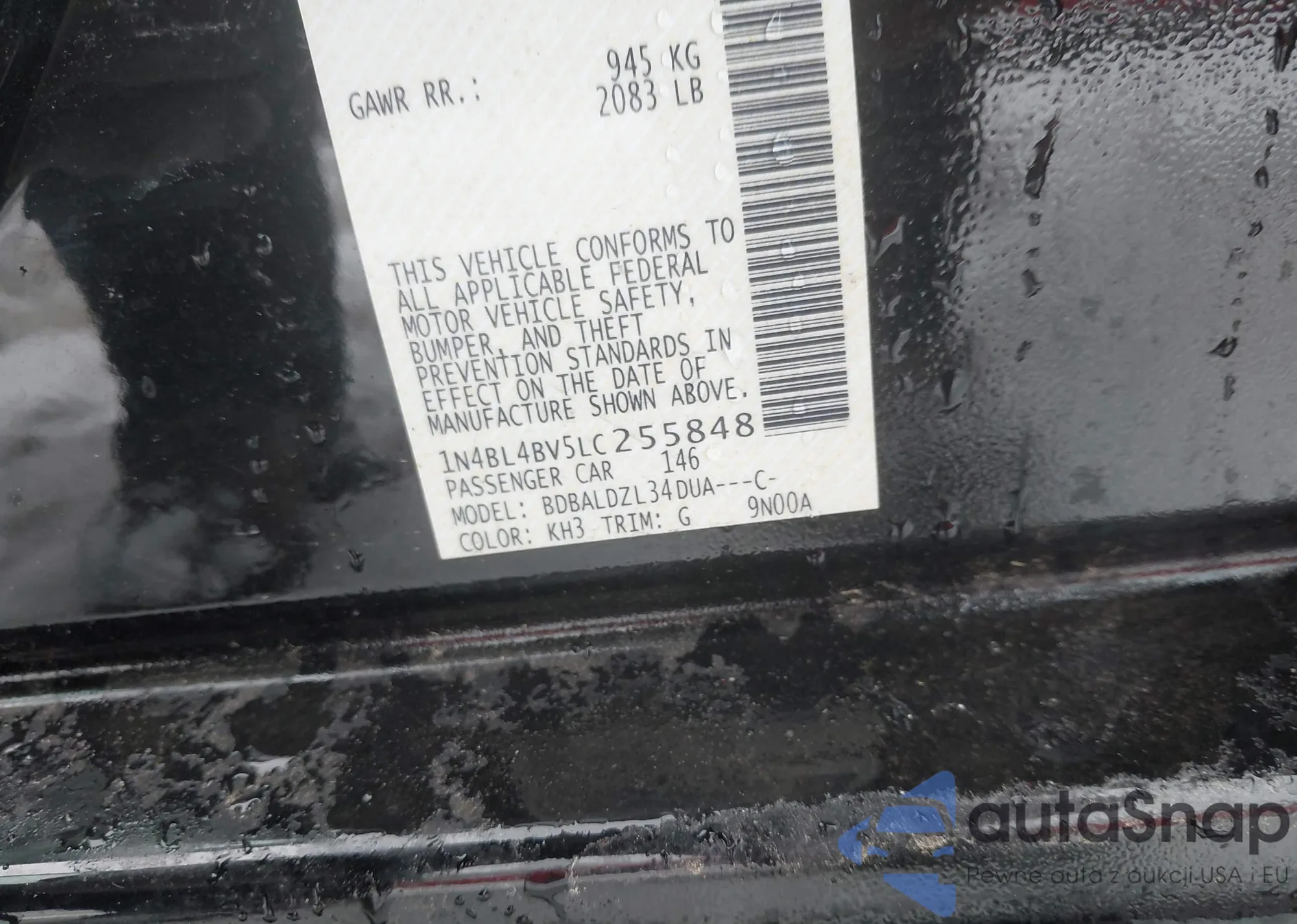 • VIN 1N4BL4BV5LC255848
