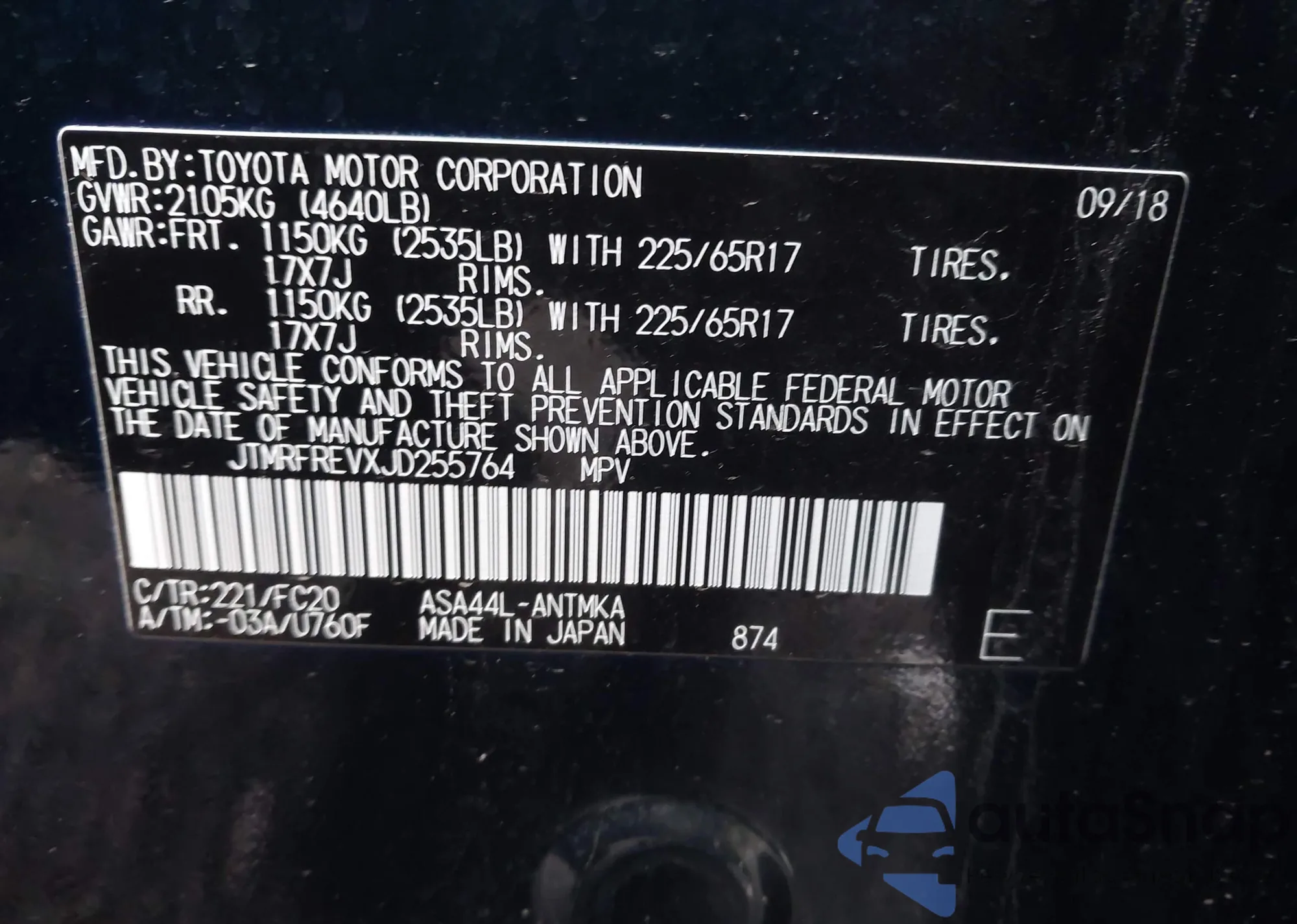 • VIN 5YFBURHE5JP817702