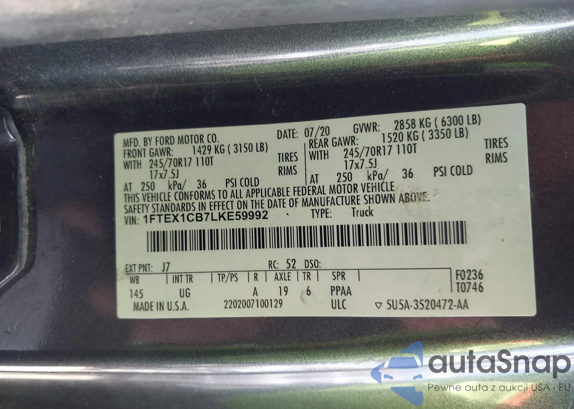 LOT: 43017336 VIN: 1FTEX1CB7LKE59992