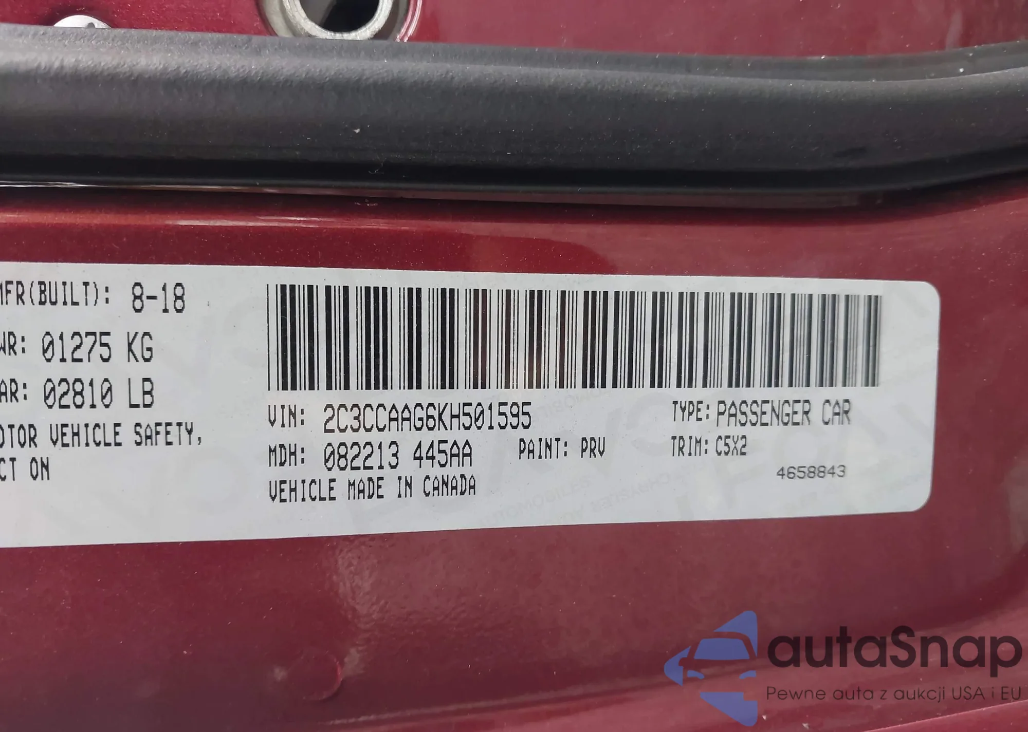 • VIN 2C3CCAAG6KH501595