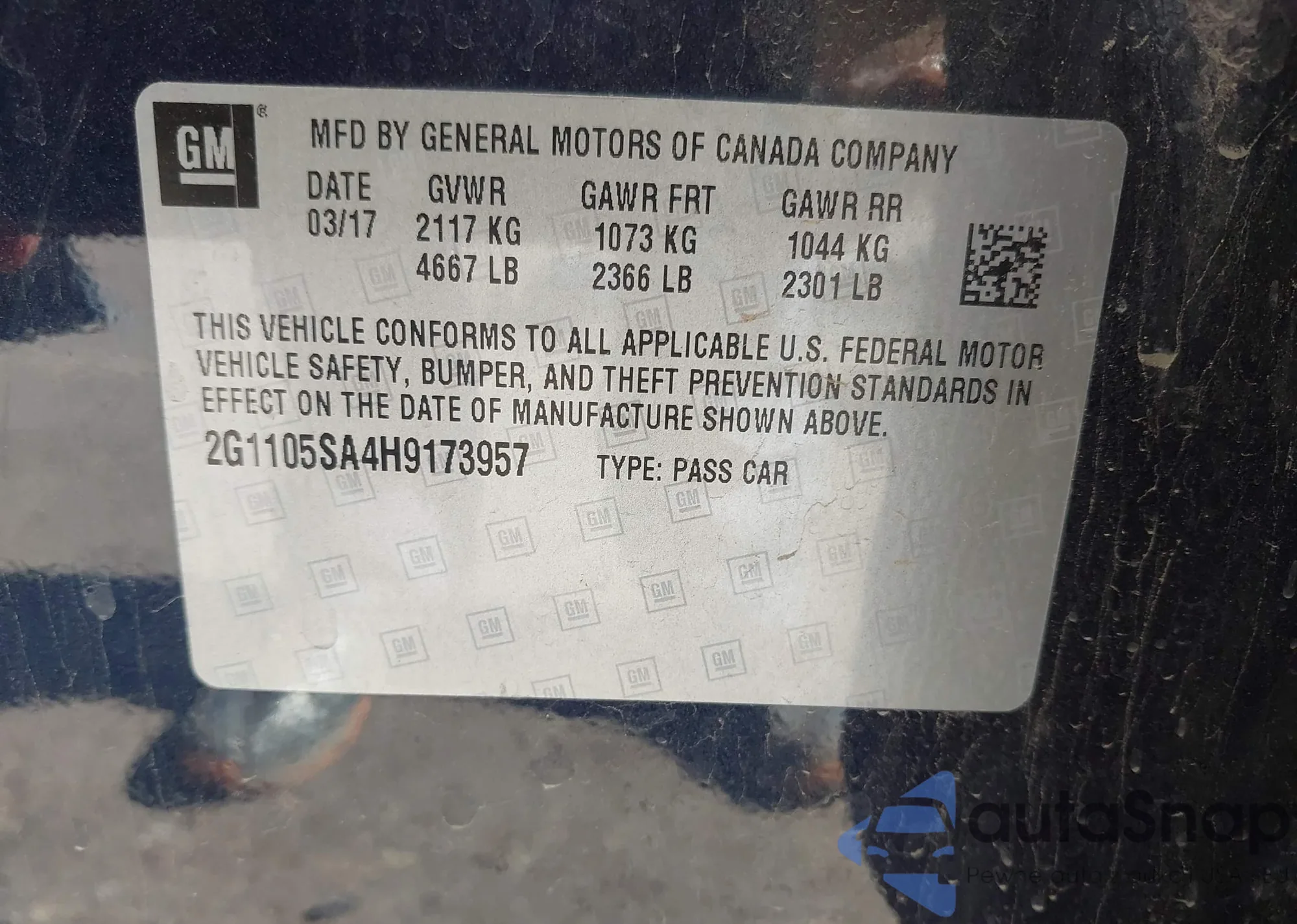 LOT: 43420893 VIN: 2G1105SA4H9173957