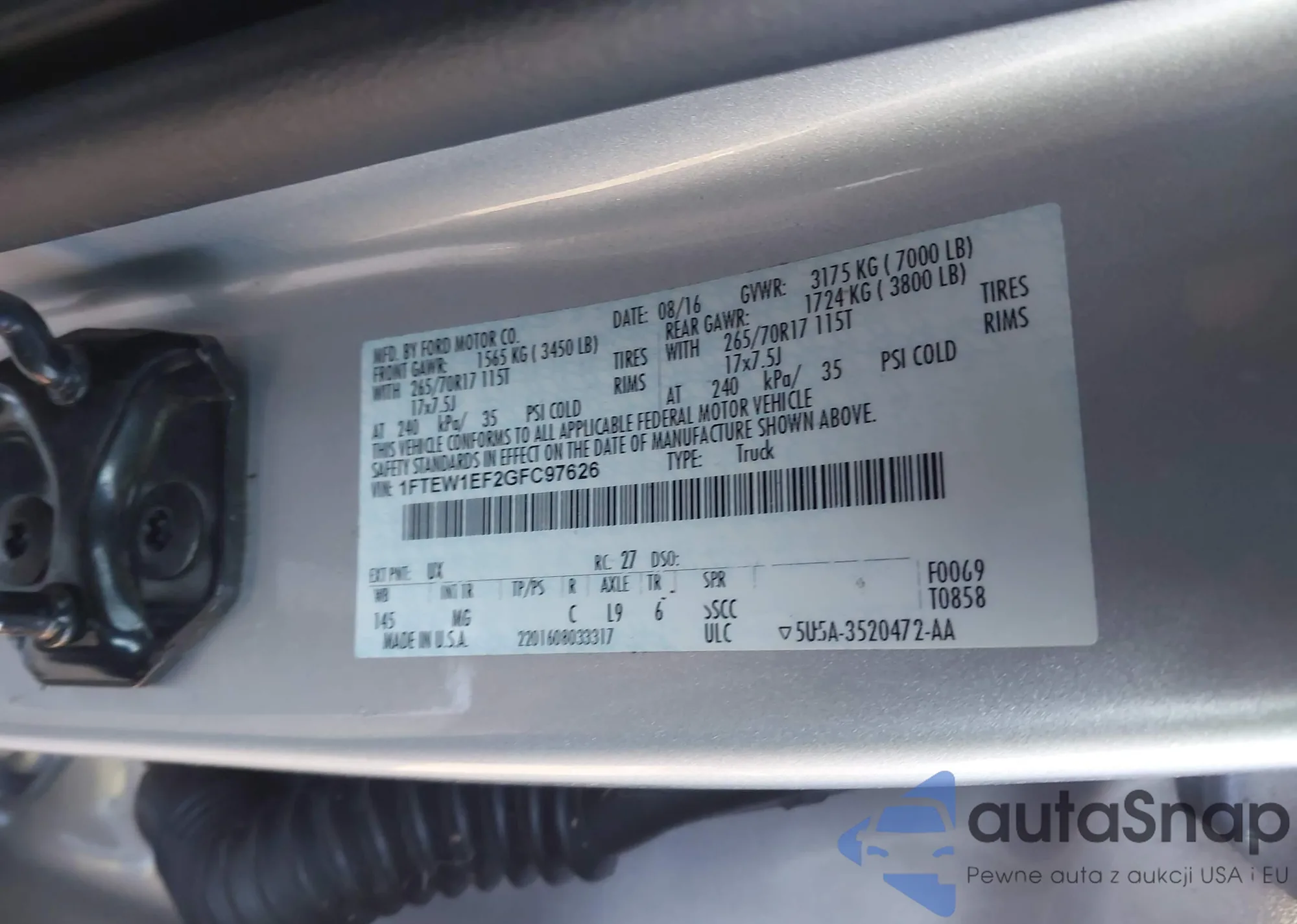 LOT: 43774460 VIN: 1FTEW1EF2GFC97626