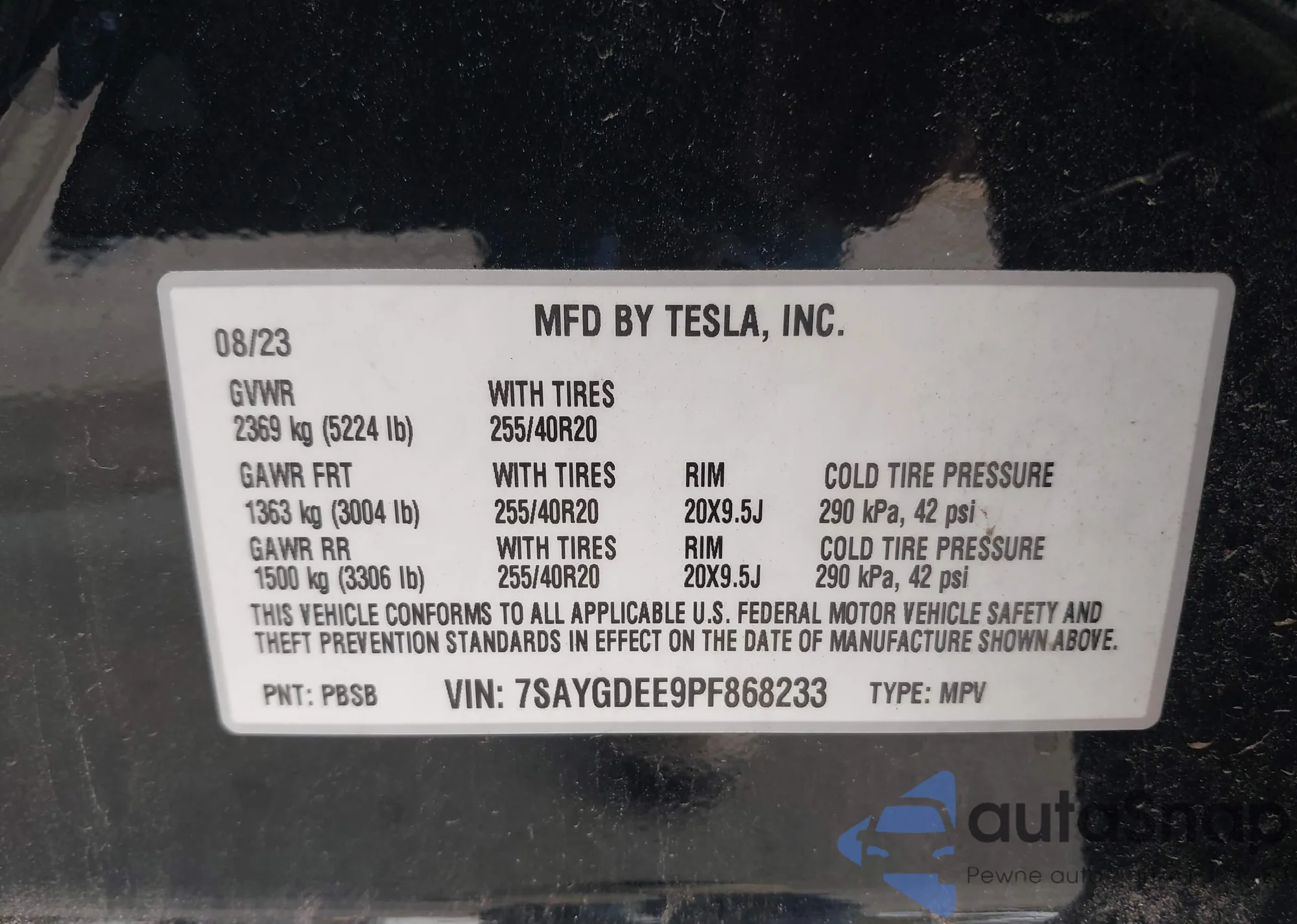 • VIN 7SAYGDEE9PF868233