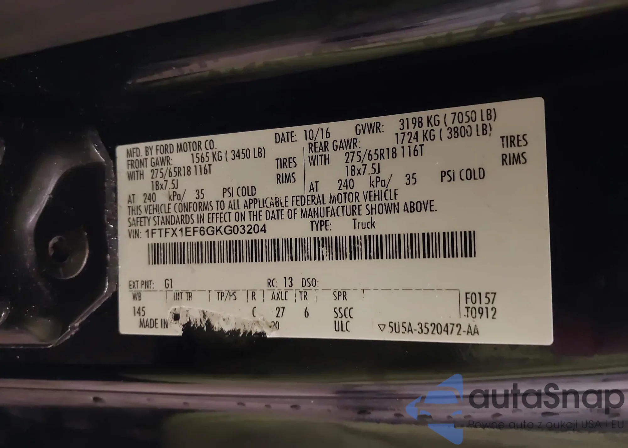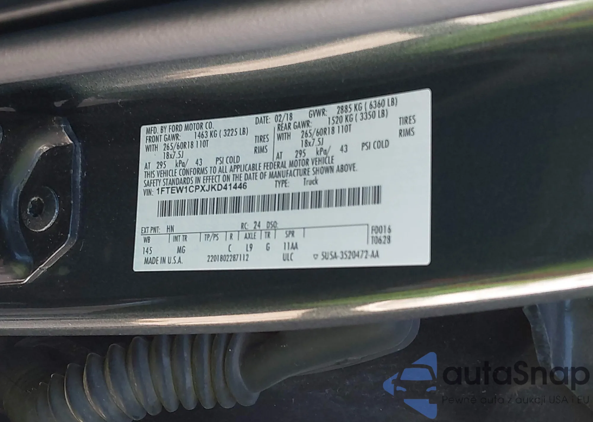 LOT: 43894368 VIN: 1FTEW1CPXJKD41446