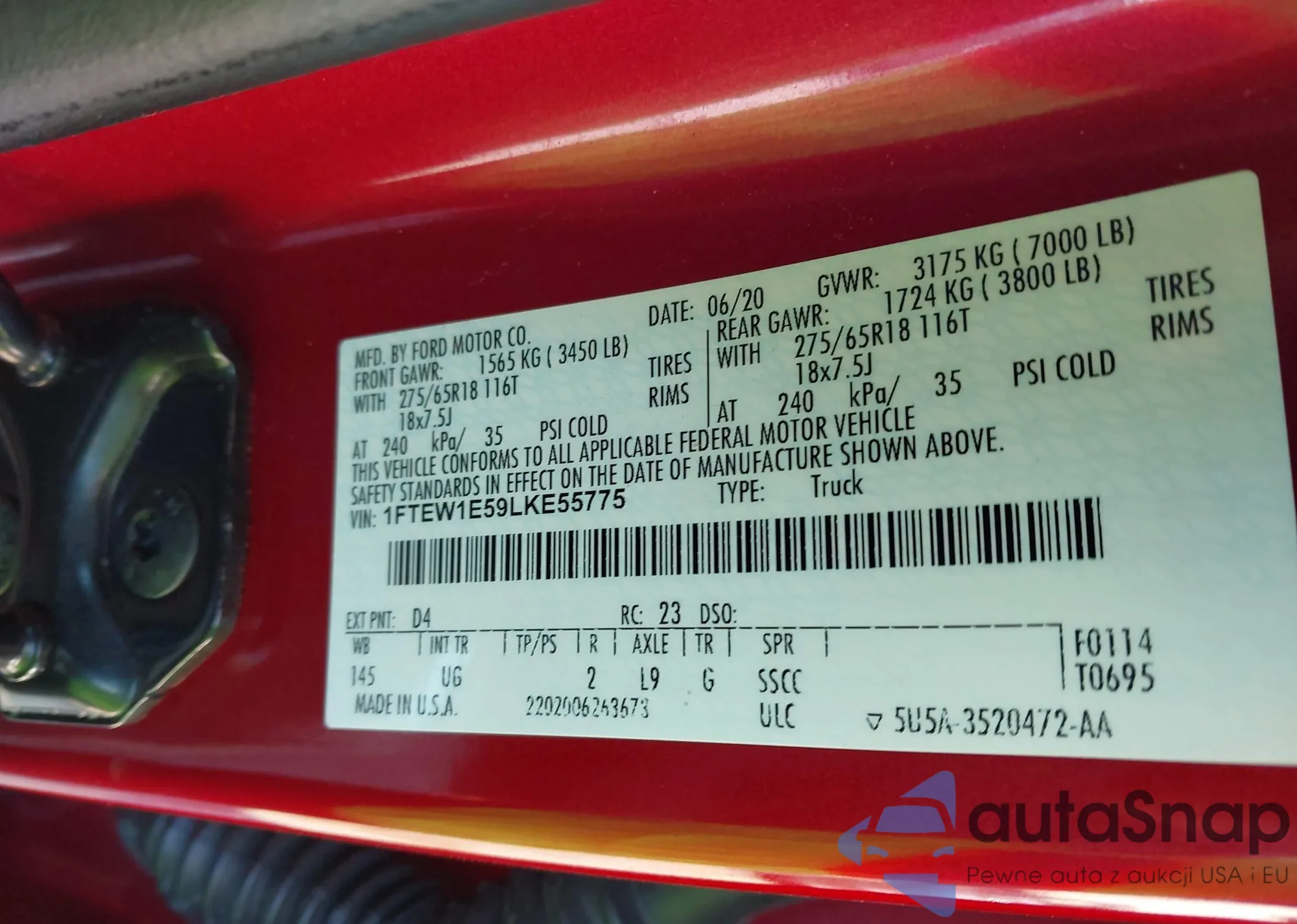 LOT: 43804266 VIN: 1FTEW1E59LKE55775