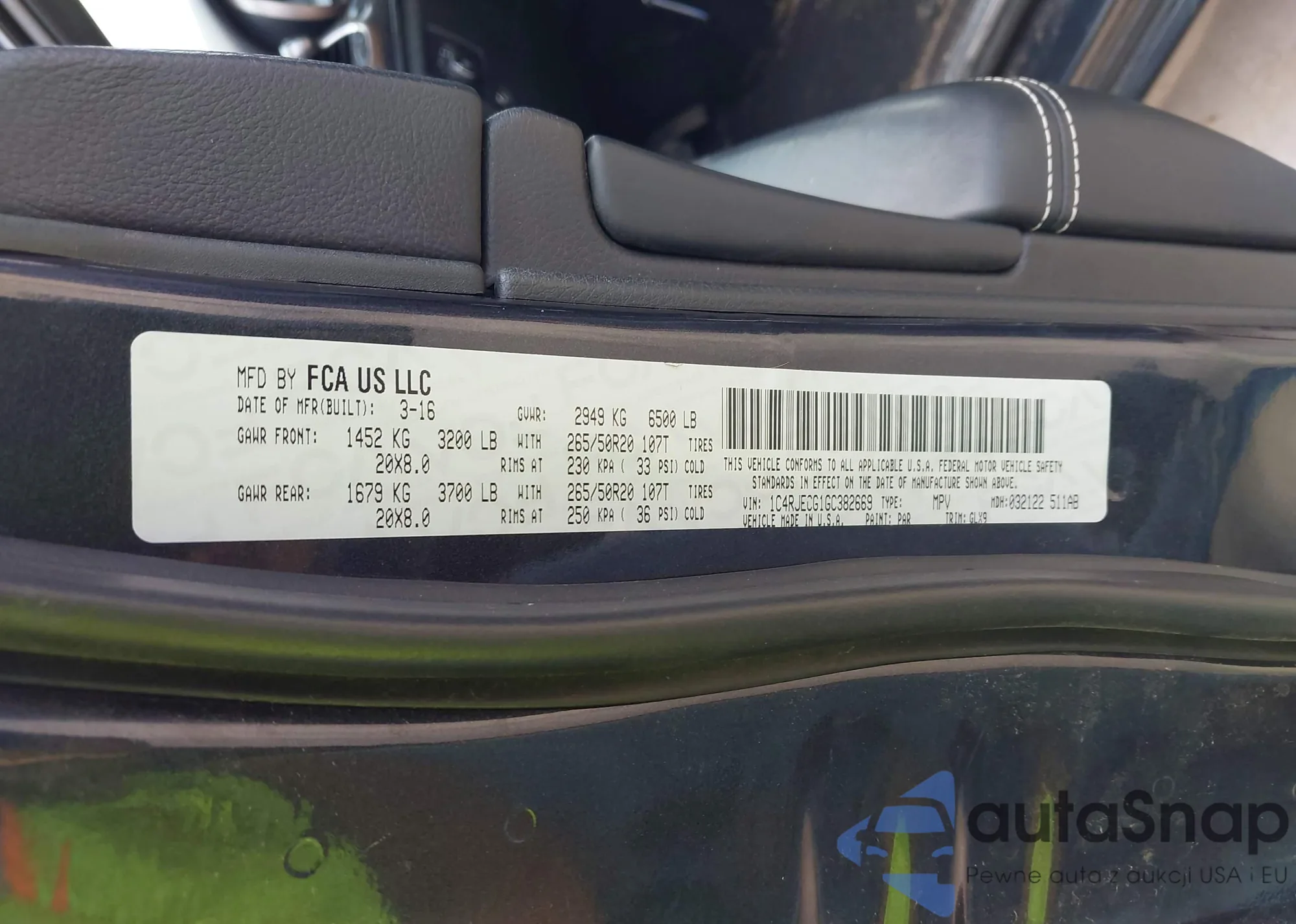 LOT: 43333859 VIN: 1C4RJECG1GC382669