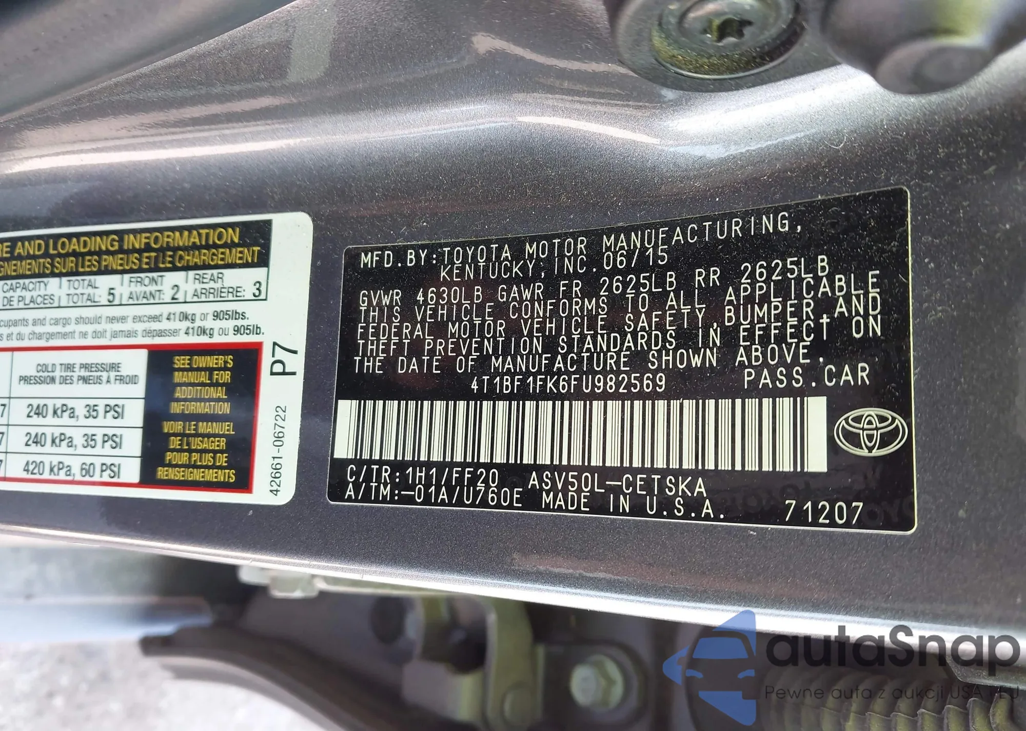 • VIN 4T1BF1FK6FU982569