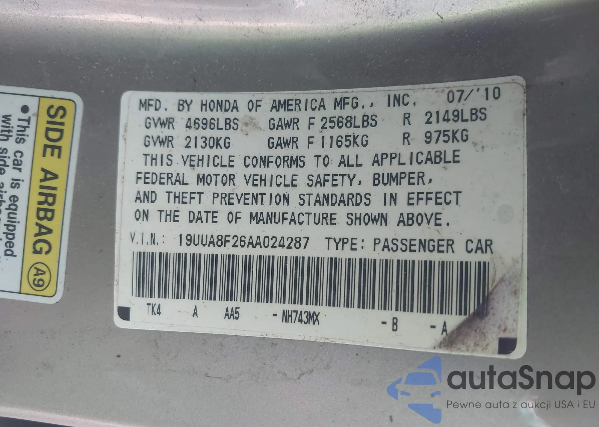 • VIN 2HGFE1E51TH473459