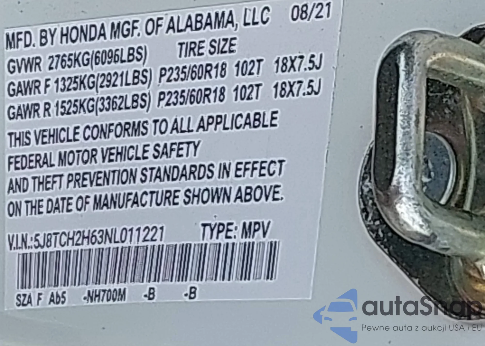 • VIN 2HKRM4H5XFH687647