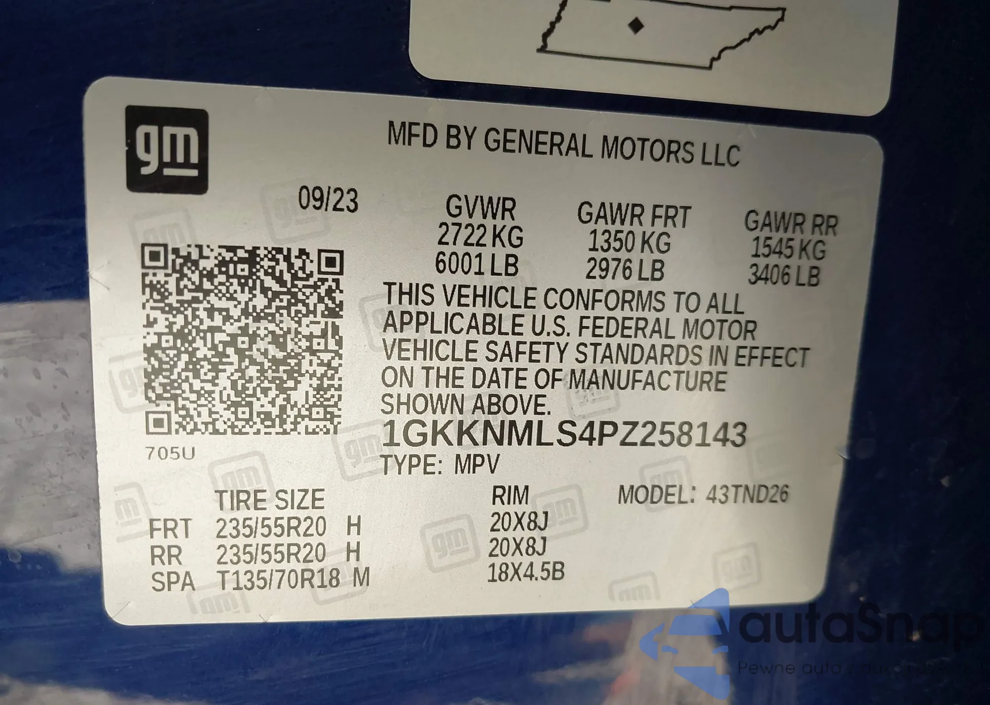 LOT: 43568784 VIN: 1GKKNMLS4PZ258143