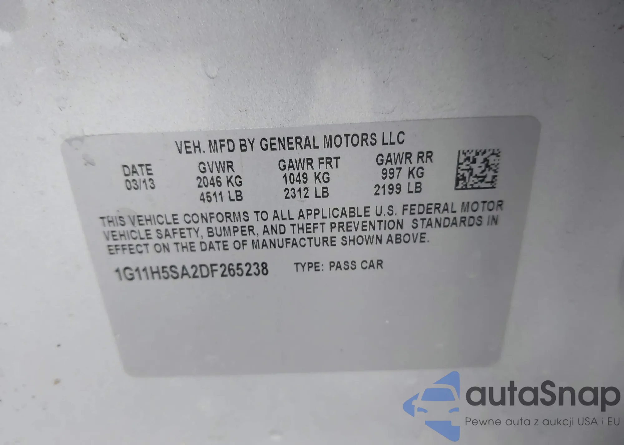 LOT: 43736680 VIN: 5NPEB4AC5DH692099
