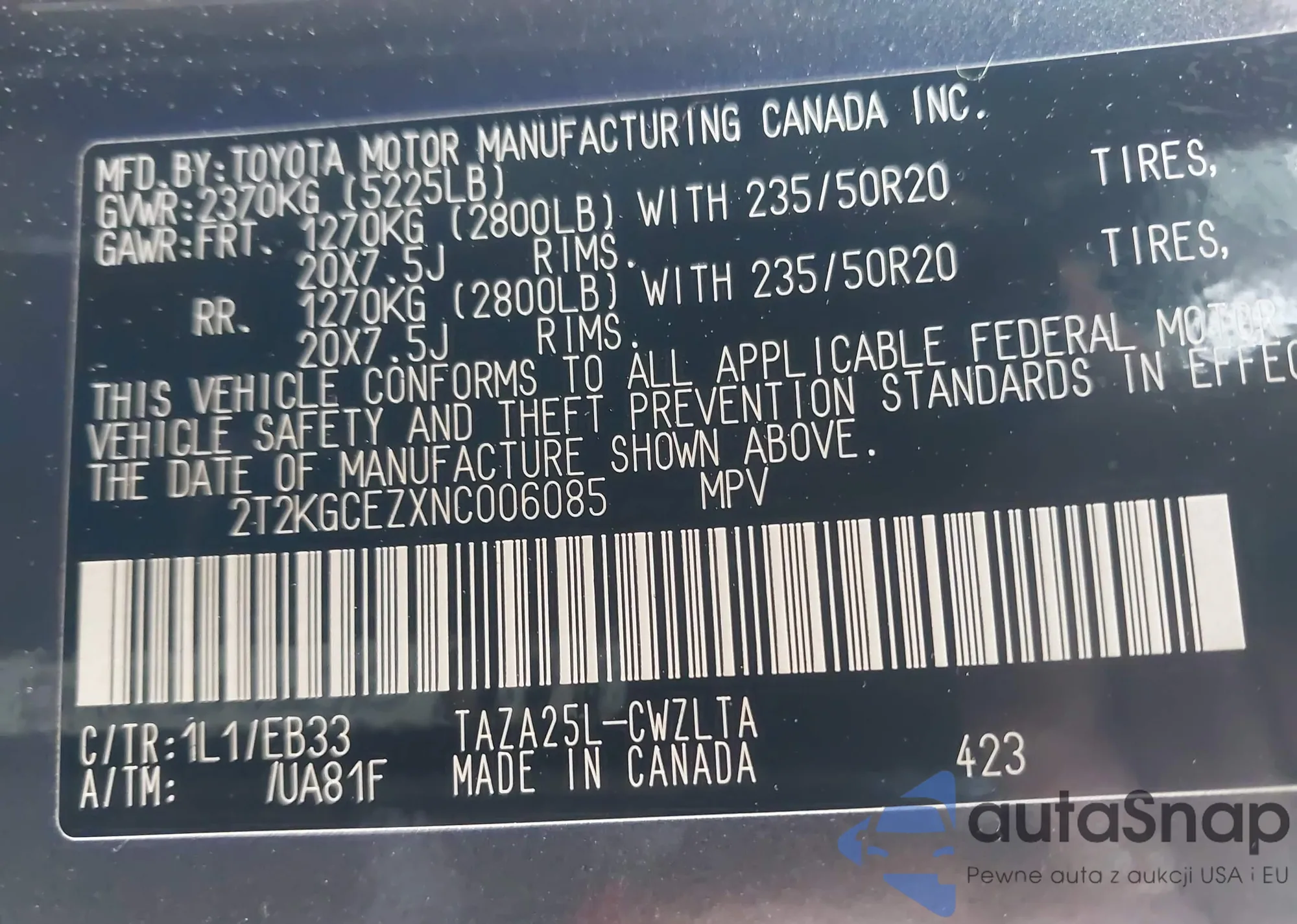 • VIN 2T2KGCEZXNC006085